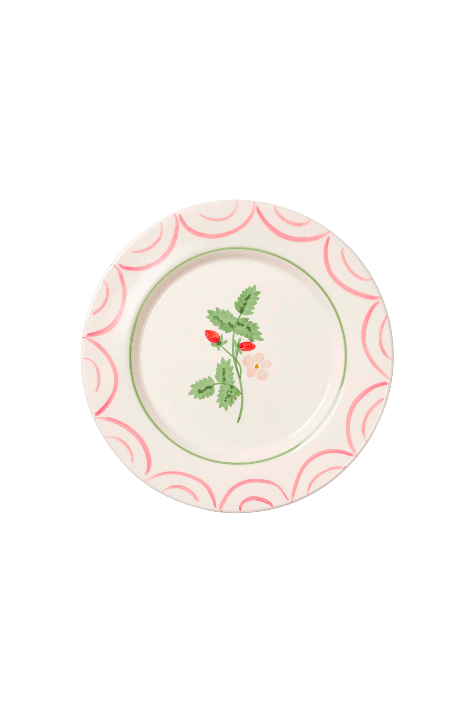 Tämä ruokalautanen on osa Cottage Flower -mallistoa. Lautanen on valmistettu käsityönä keramiikasta perinteisellä portugalilaisella tekniikalla ja maalattu käsin wild strawberry -aiheella. Se on täydellinen valinta kesäisille lounaille ja illallisille. Yhdistä se muiden Cottage Flower -malliston lautasten kanssa tai sekoita vapaasti leikkisän pöydän kattauksen luomiseksi.