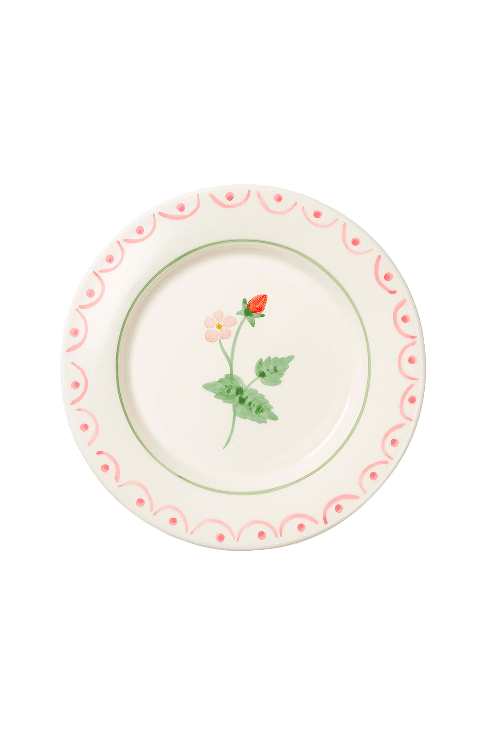 Tämä salaattilautanen on osa Cottage Flower -mallistoa. Lautanen on valmistettu käsityönä keramiikasta perinteisillä portugalilaisilla tekniikoilla ja maalattu käsin wild strawberry -aiheella. Se on täydellinen valinta kesäisille lounaille ja illallisille. Yhdistä se muiden Cottage Flower -malliston lautasten kanssa tai sekoita vapaasti leikkisän pöydän kattauksen luomiseksi.