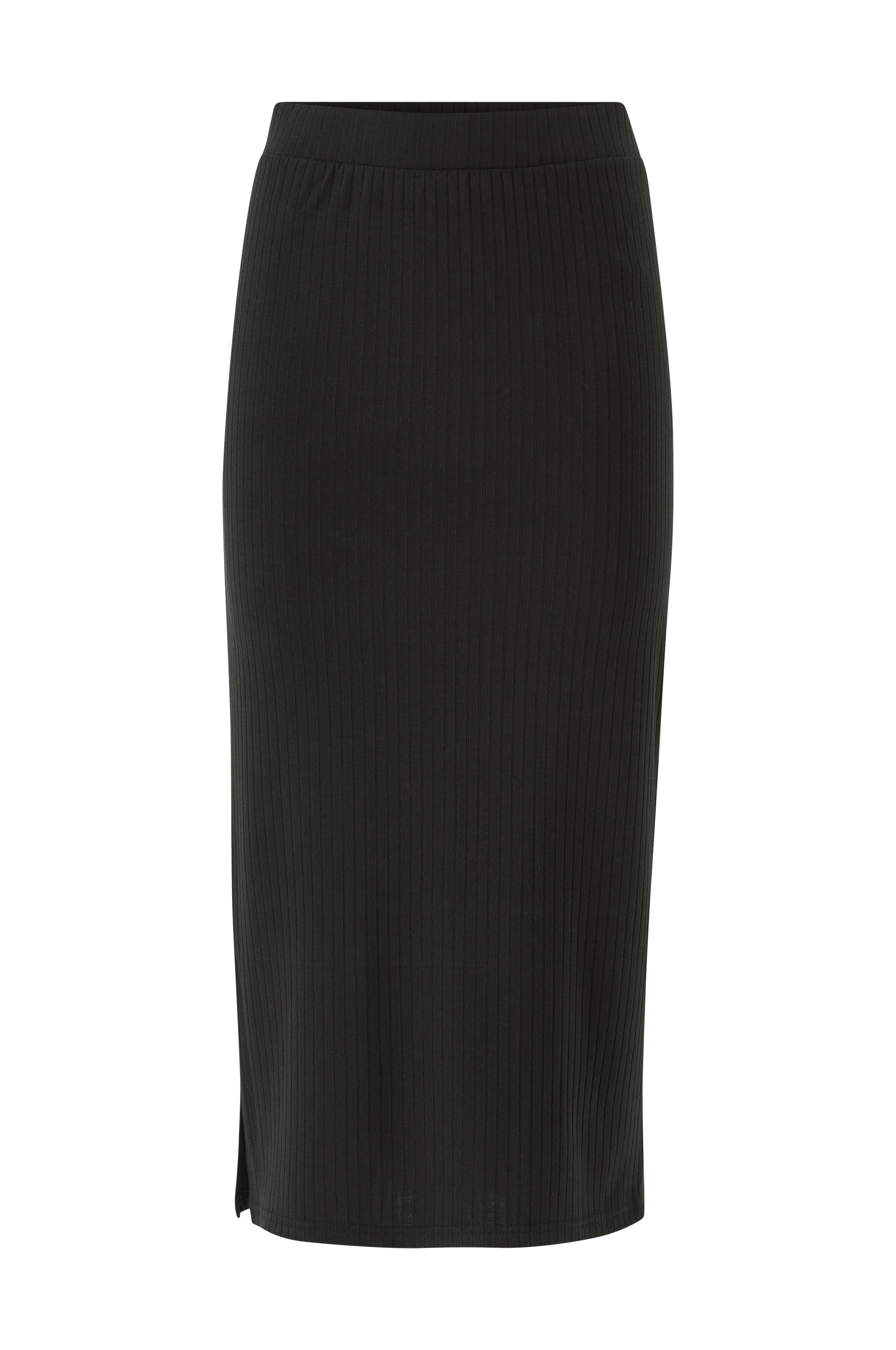 Pieces pcKylie MW Midi Skirt -hame. Pohjepituinen, kapea malli joustinneulostrikoota. Halkio toisella sivulla ja joustava vyötärö. Pituus n. 80 cm koossa S.
