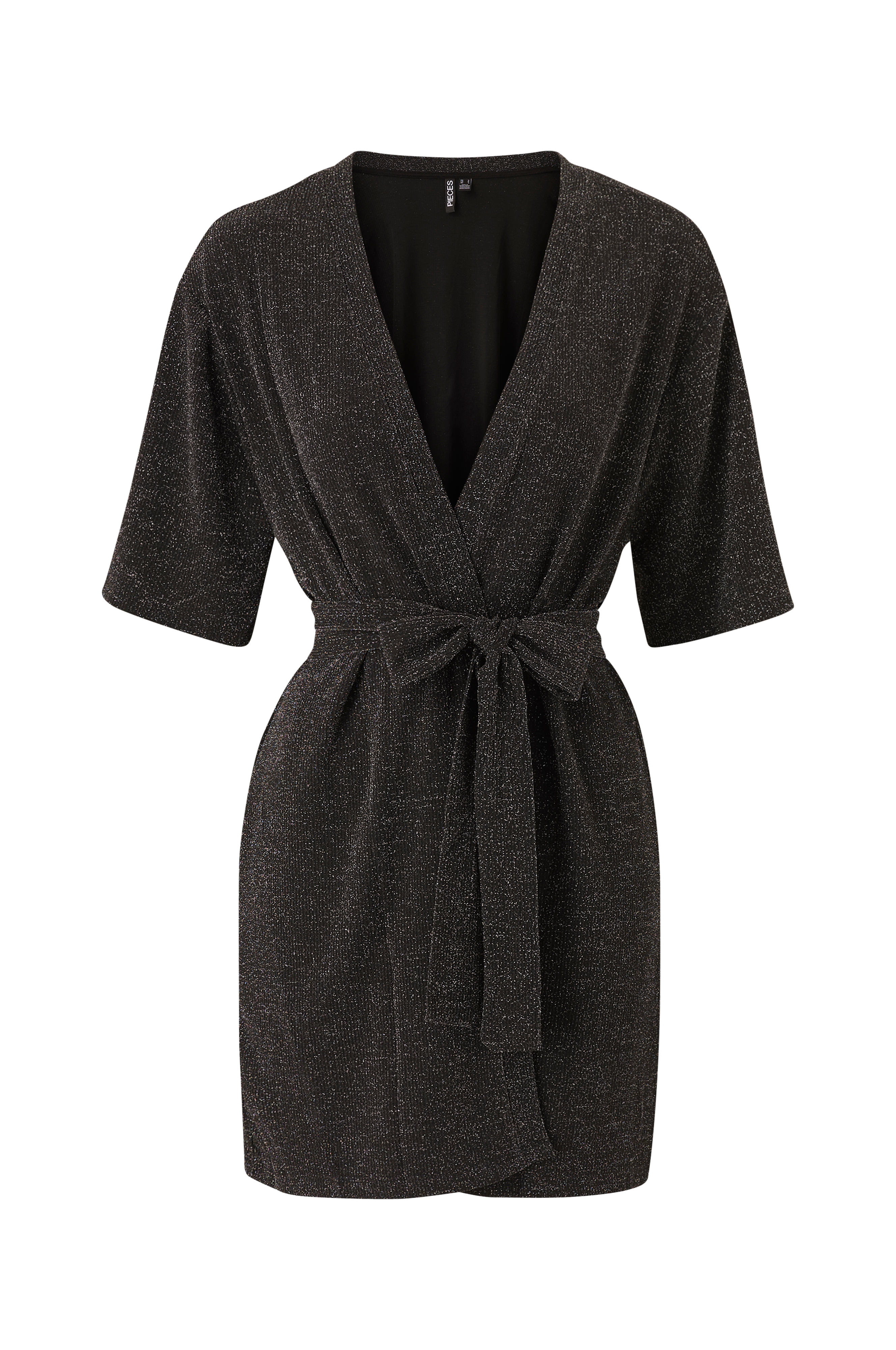 • Avoin, kimalteleva malli itsesolmittavalla vyöllä vyötäröllä• Lyhyt hiha• Pituus: 85 cm koossa S