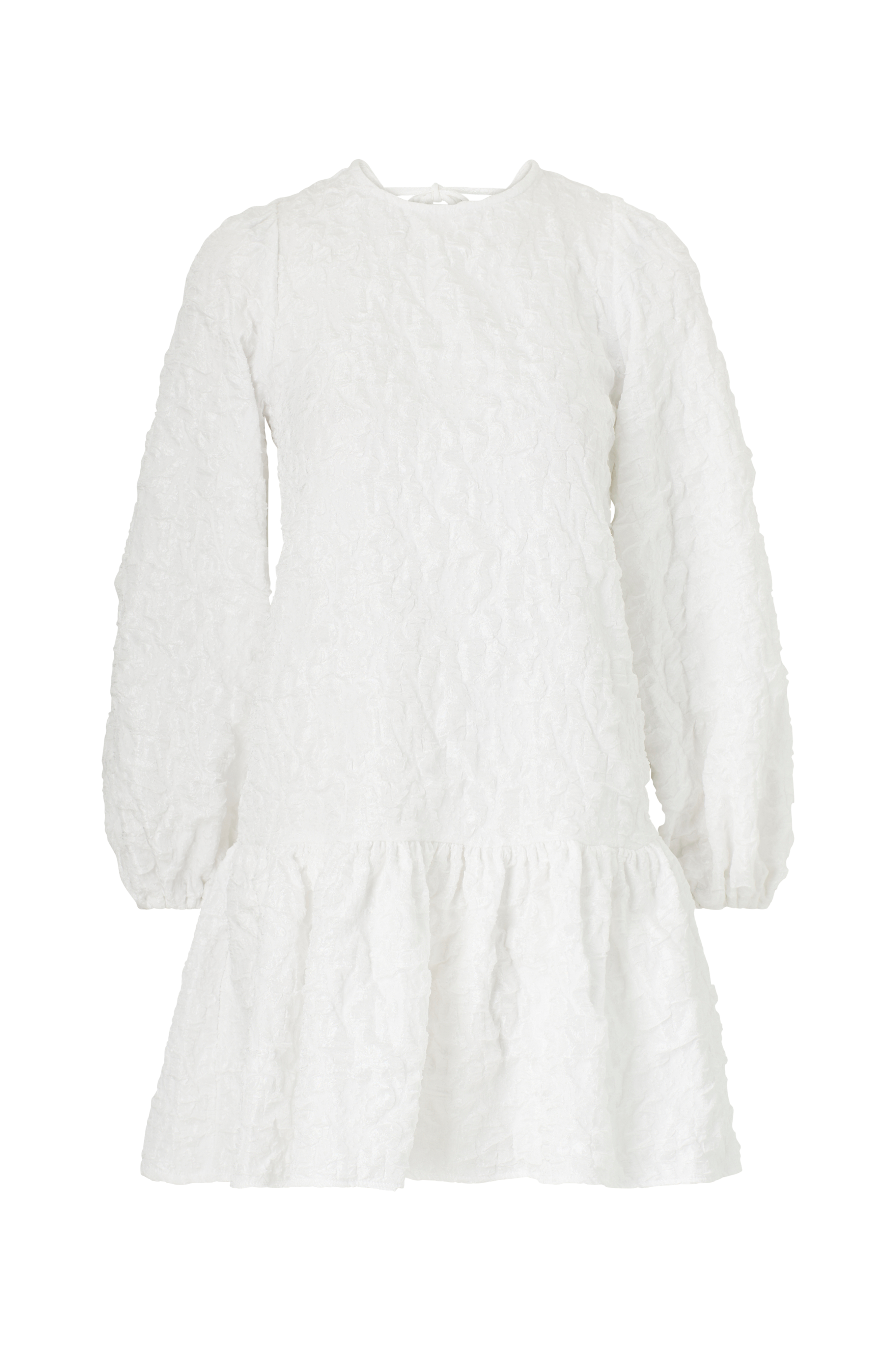 • Lyhyt, levenevä malli rakenteellinen laadusta• Pyöreä pääntie• Syvästi leikattu selkä kolmella nyörillä• Hyvin leveä hiha kuminauhalla hihansuissa• Leveä röyhelö alahelmassa• Pituus: 90 cm koossa S