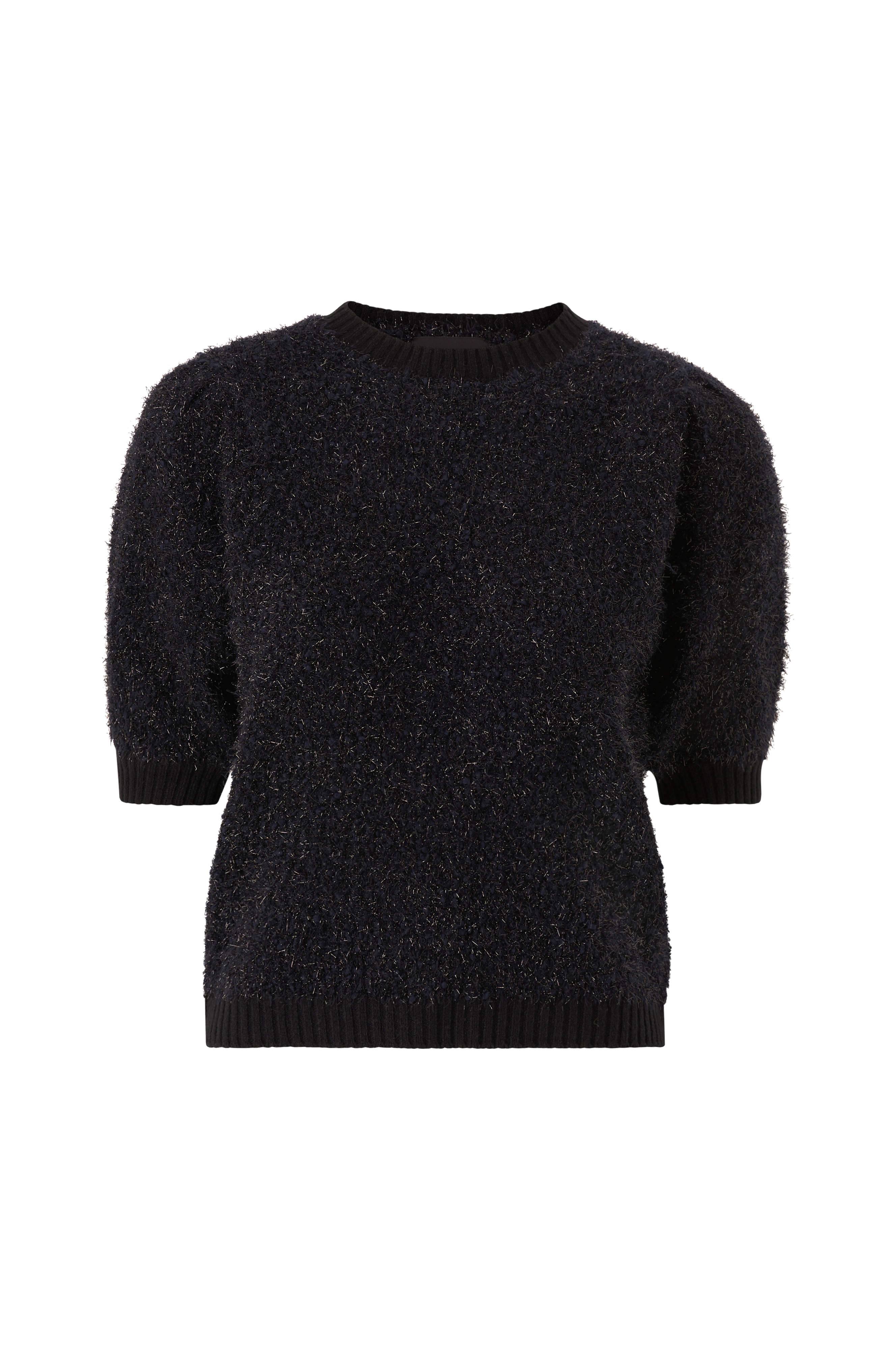• Lyhythihainen, neulottu paita• Röyhelöinen, kimalteleva pinta• Ribbineulos hihansuissa, alhaalla ja kaulassa