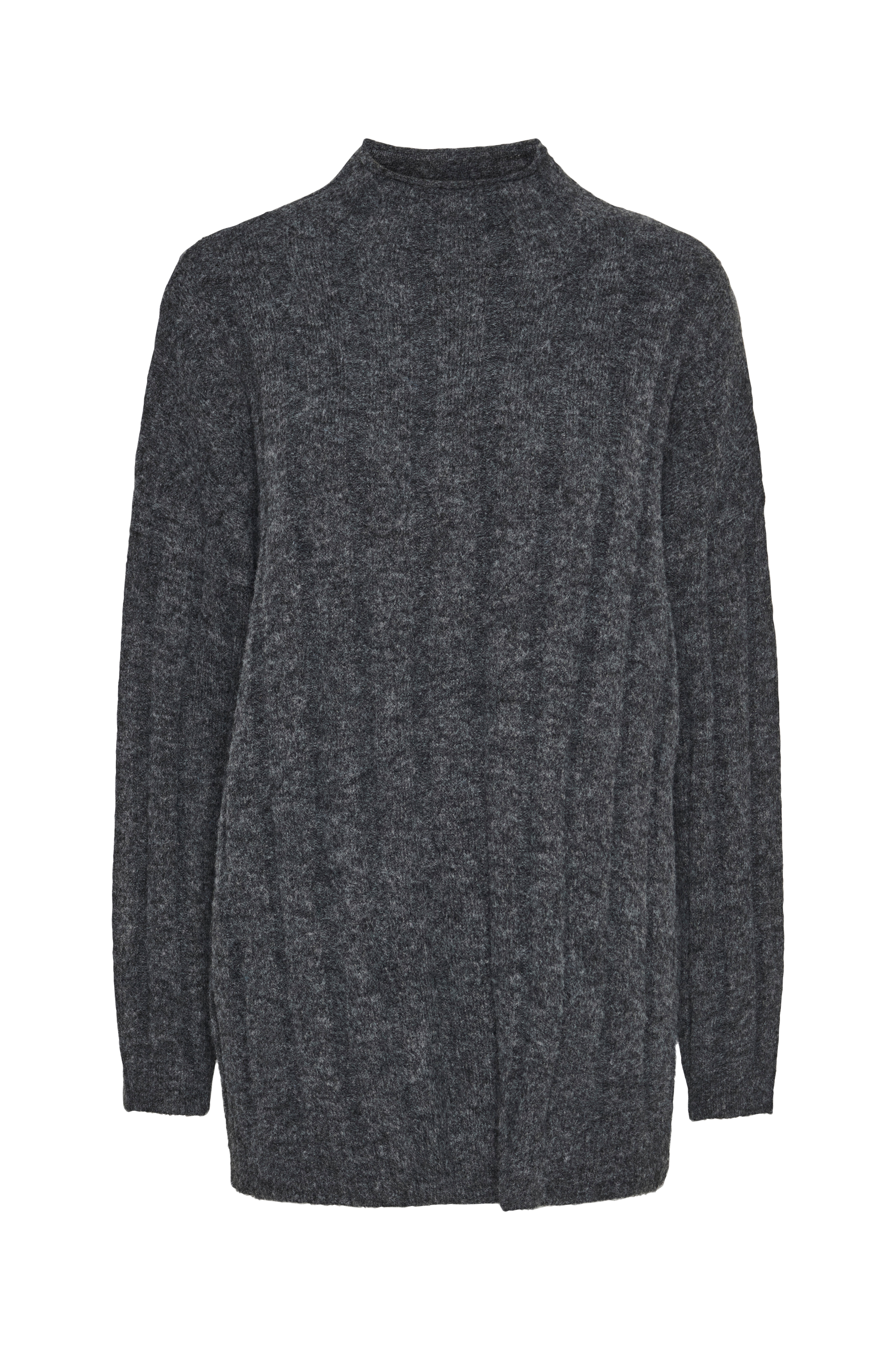• Raidallinen oversize-malli korkealla kauluksella• Pudotettu olkapää• Pitkä hiha• Ribbineulos alahelmassa ja hihansuissa