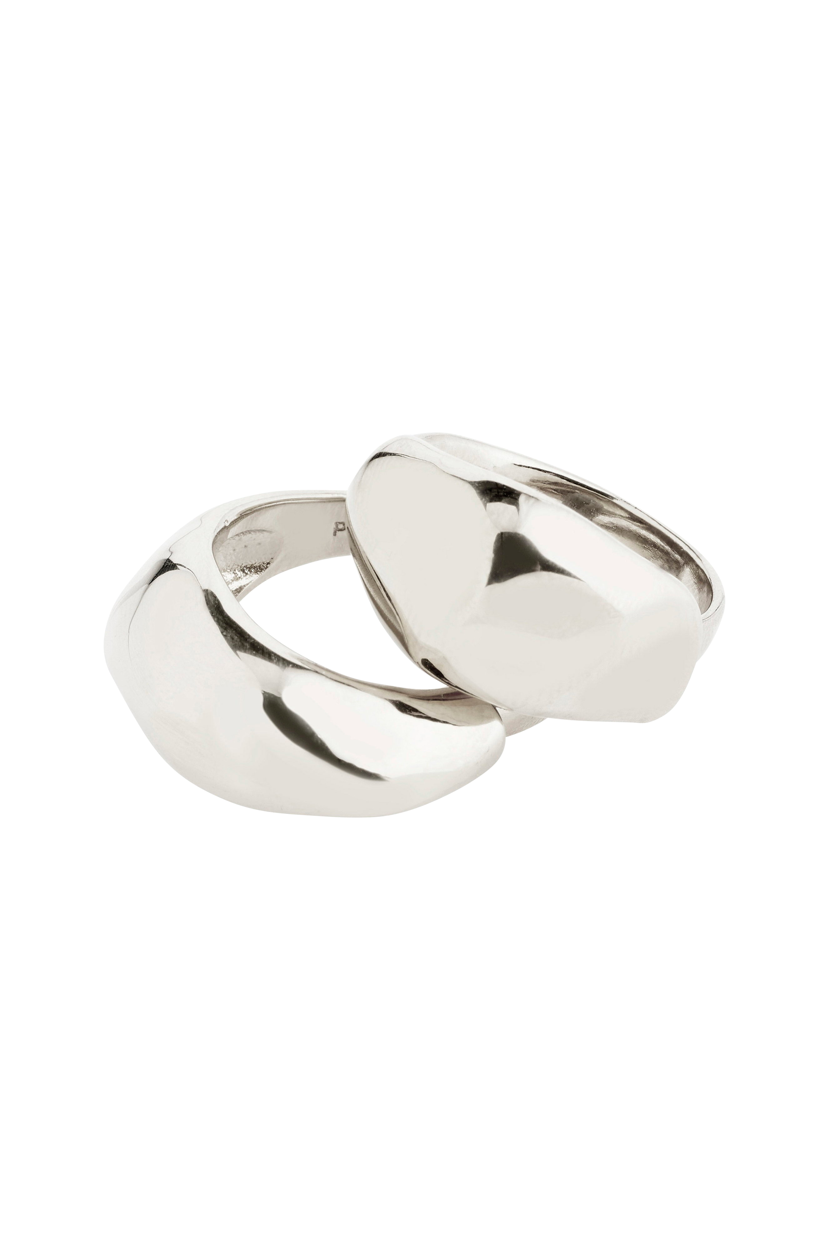 Tyylisi kertoo kaiken! Korosta tyyliäsi vaivattomasti Pilgrimin Dune -malliston 2 hopeoidulla sormuksella - kauden must-have. Setti kiiltäviä, kookkaita sormuksia, joiden tyylikäs ja voimakas muotoilu on saanut inspiraationsa skandi-minimalismista. Yhdistä ne toisiinsa rohkean, päällekkäisen ilmeen luomiseksi tai käytä niitä yksinään klassisen, ajattoman tunnelman luomiseksi. Nämä sormukset ovat säädettävissä täydellisen istuvuuden varmistamiseksi, ja ne on valmistettu 99-prosenttisesti kierrätysmateriaaleista - tyylin ja planeettamme kunnioittamisen yhdistelmä.