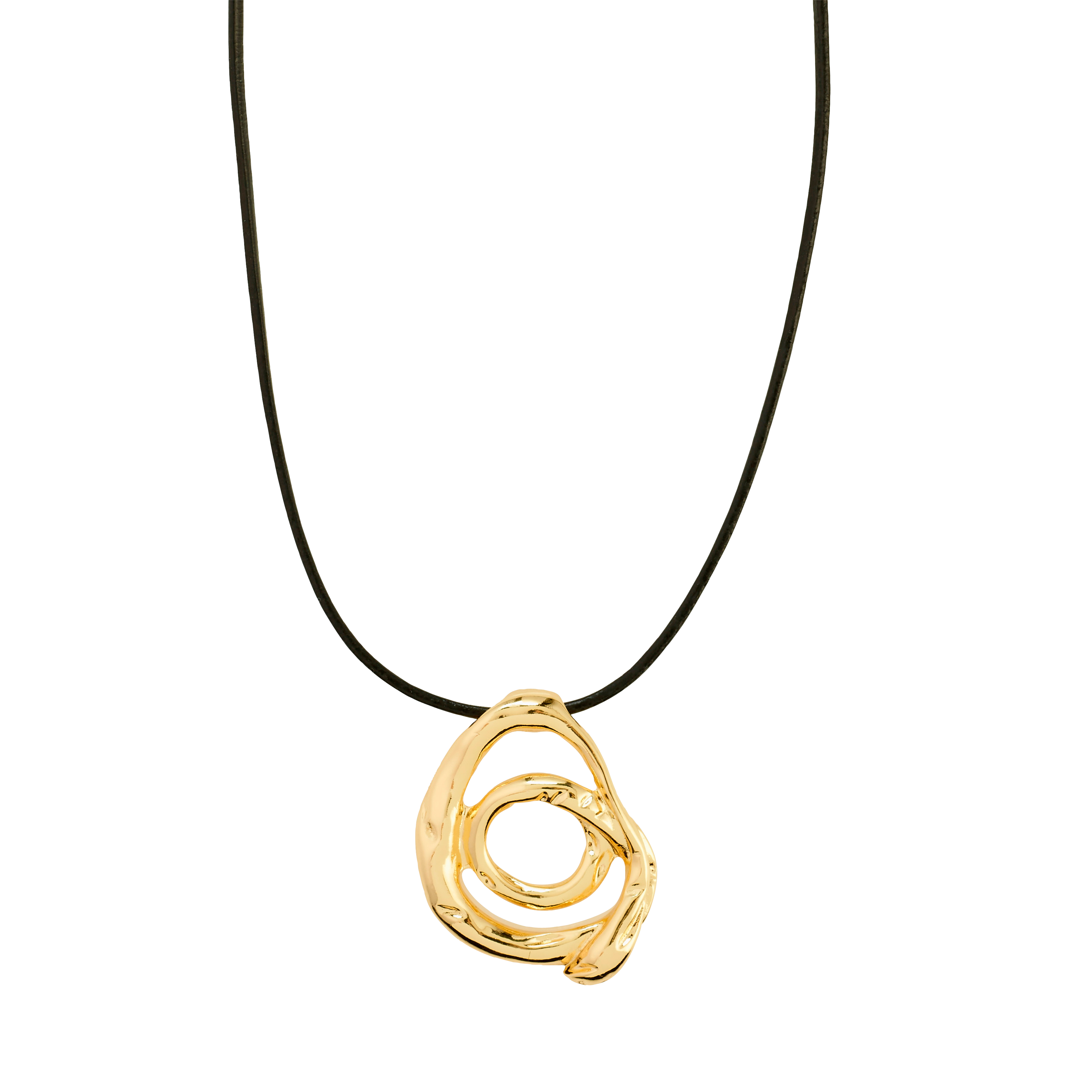 Vahvuutesi avautuu ainutlaatuisessa tyylissäsi! Näytä maailmalle kuka olet ja anna asullesi taiteellinen vivahde Pilgrimin kullatulla Unfold -kaulakorulla. Tässä kaulakorussa on musta nahkajohto ja suuri, kierretty doodle-riipus, ja se sopii niille, jotka rakastavat luovaa kosketusta lookissaan. Muotoile se ylisuuren hupparin tai yksinkertaisen t-paidan päälle, niin saat rennon tyylin, jossa on taiteellinen särmä. Kaulakorun pituus on 36 cm, ja siinä on 12 cm:n jatkoketju, ja se on valmistettu 91-prosenttisesti kierrätysmateriaalista - tämä on tarkoituksenmukaista tyyliä!