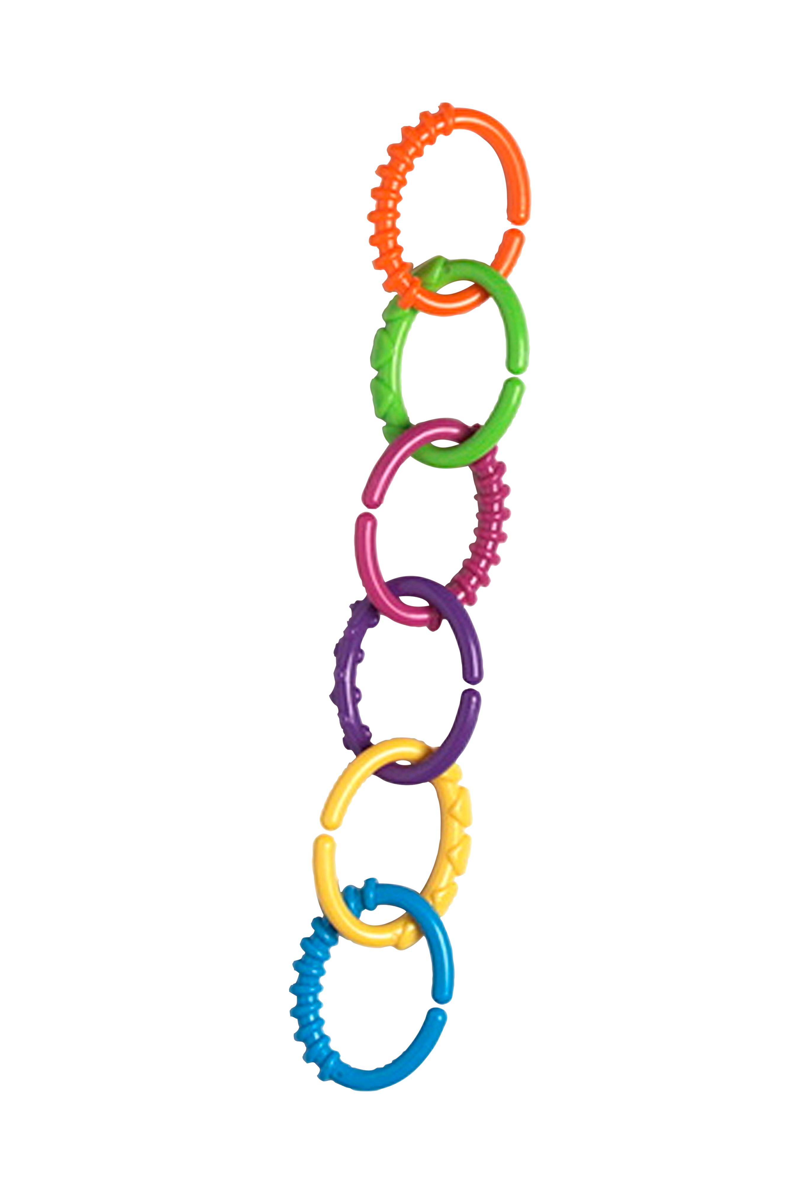 24 rengasta, jotka voi kiinnittää yhteen tai irrottaa toisistaan. Renkailla voi kiinnittää liinan vaunuihin aurinkosuojaksi tai kiinnittää vaunuihin tai babysitteriin leluja tai paljon muuta.