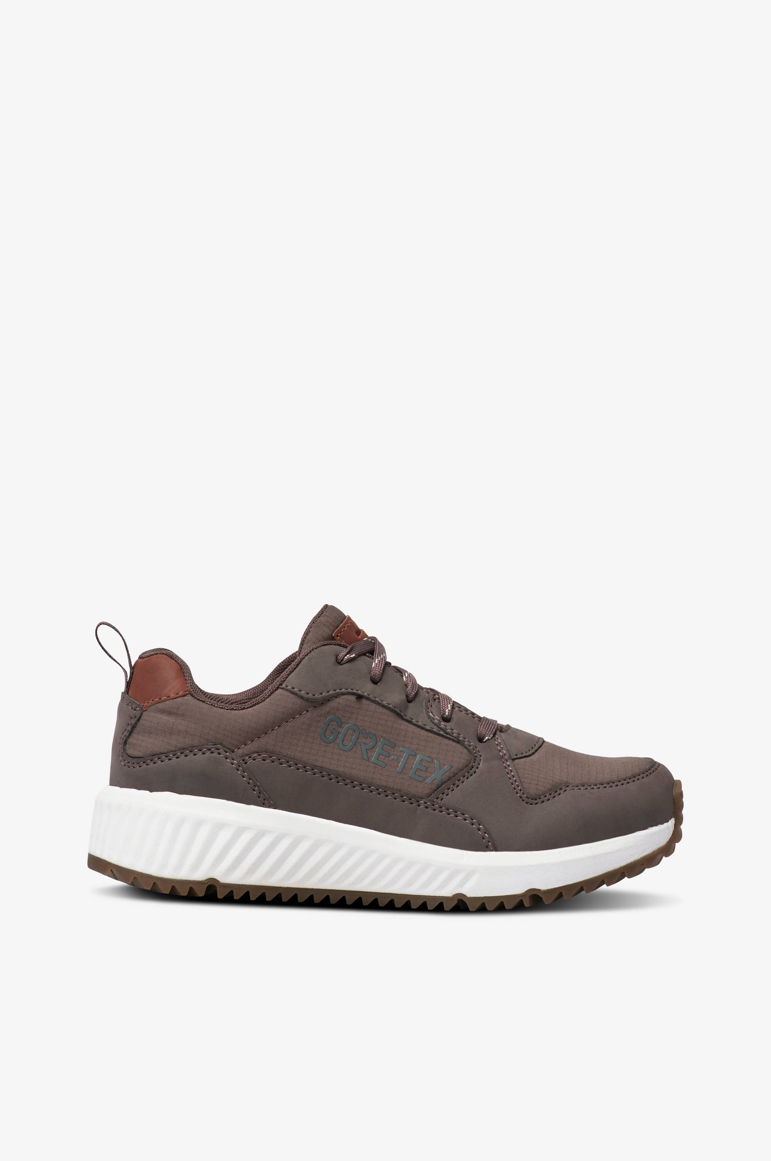 Vedenpitävät kävelylenkkarit, joissa päällinen verkkokangasta ja mikrokuitua. Vedenpitävä Gore-Tex-kalvo pitää jalat kuivina. Kangasvuori. Kankainen vetolenkki takana. Pehmeä, irrotettava sisäpohja. Ulkopohja Phylon-kumia.