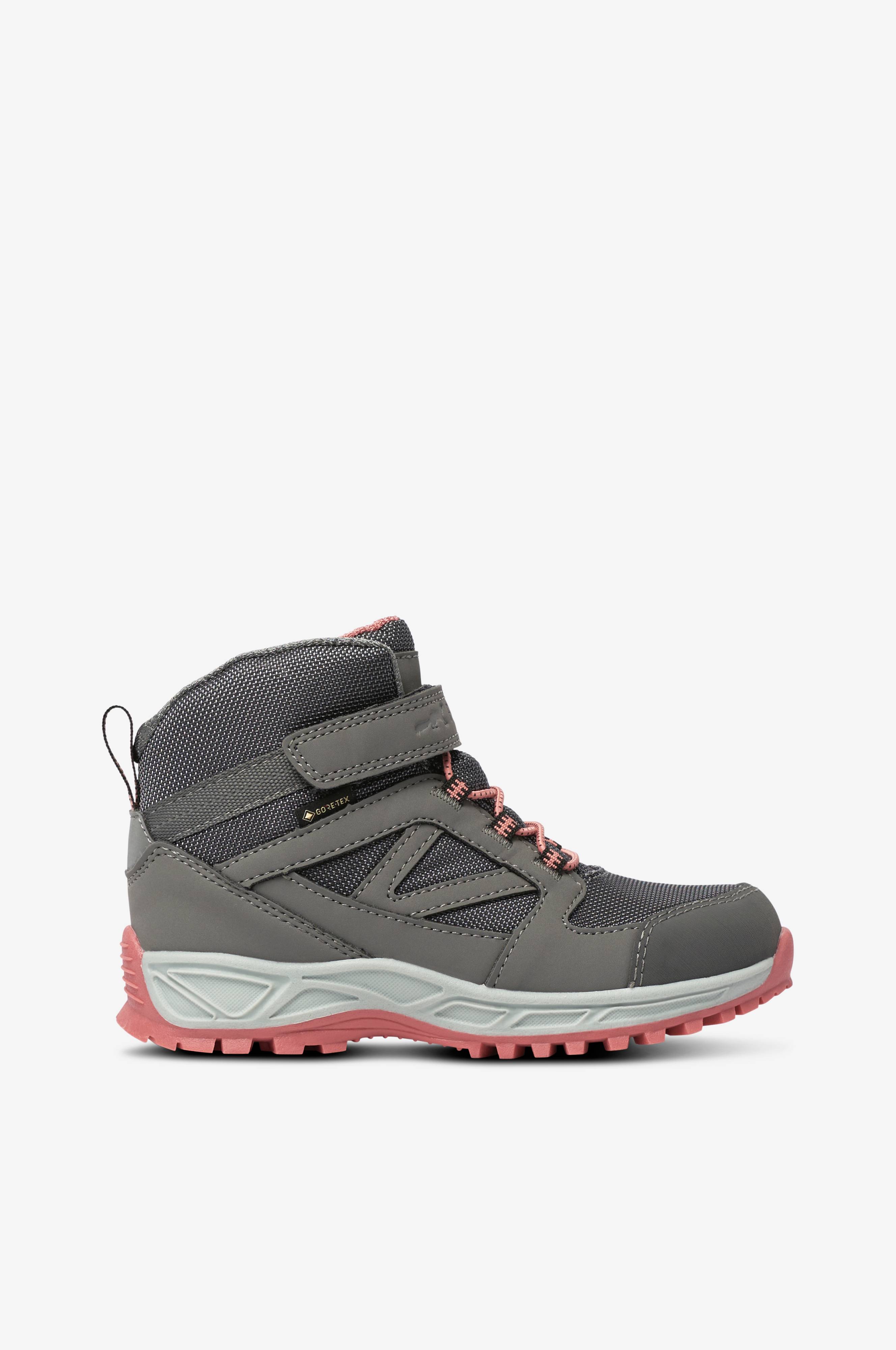 Joustavat, korkeavartiset nilkkurit, joissa sporttinen malli. Pehmeä ja hengittävä fleecevuori. Päällinen verkkokangasta, vahvikkeet synteettistä materiaalia. Vedenpitävä GoreTex-kalvo. Joustava pikanyöritys ja hyvän istuvuuden takaava tarranauharemmi. Pitävä karkeakuvioinen ulkopohja.