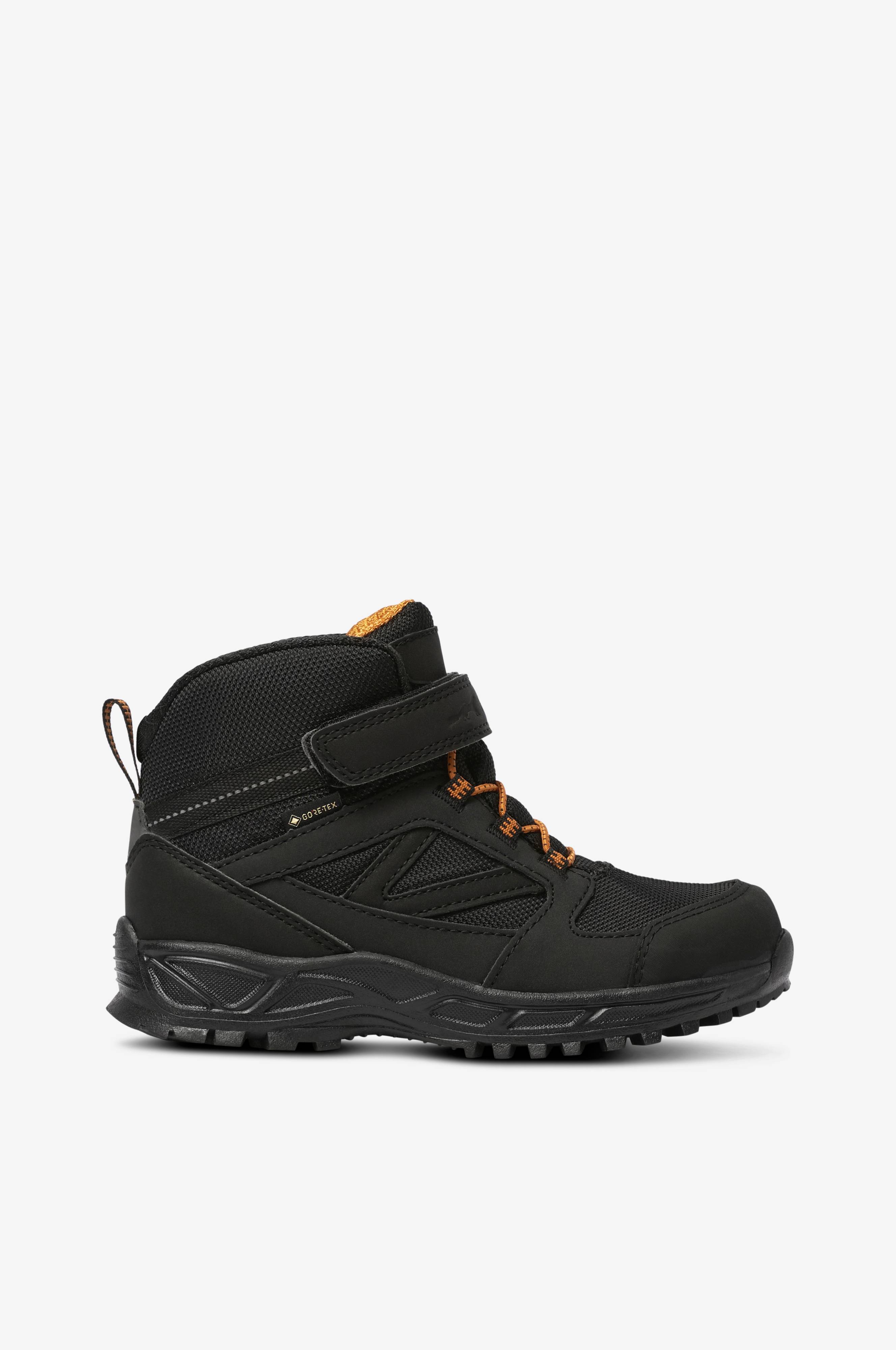 Joustavat, korkeavartiset nilkkurit, joissa sporttinen malli. Pehmeä ja hengittävä fleecevuori. Päällinen verkkokangasta, vahvikkeet synteettistä materiaalia. Vedenpitävä GoreTex-kalvo. Joustava pikanyöritys ja hyvän istuvuuden takaava tarranauharemmi. Pitävä karkeakuvioinen ulkopohja.