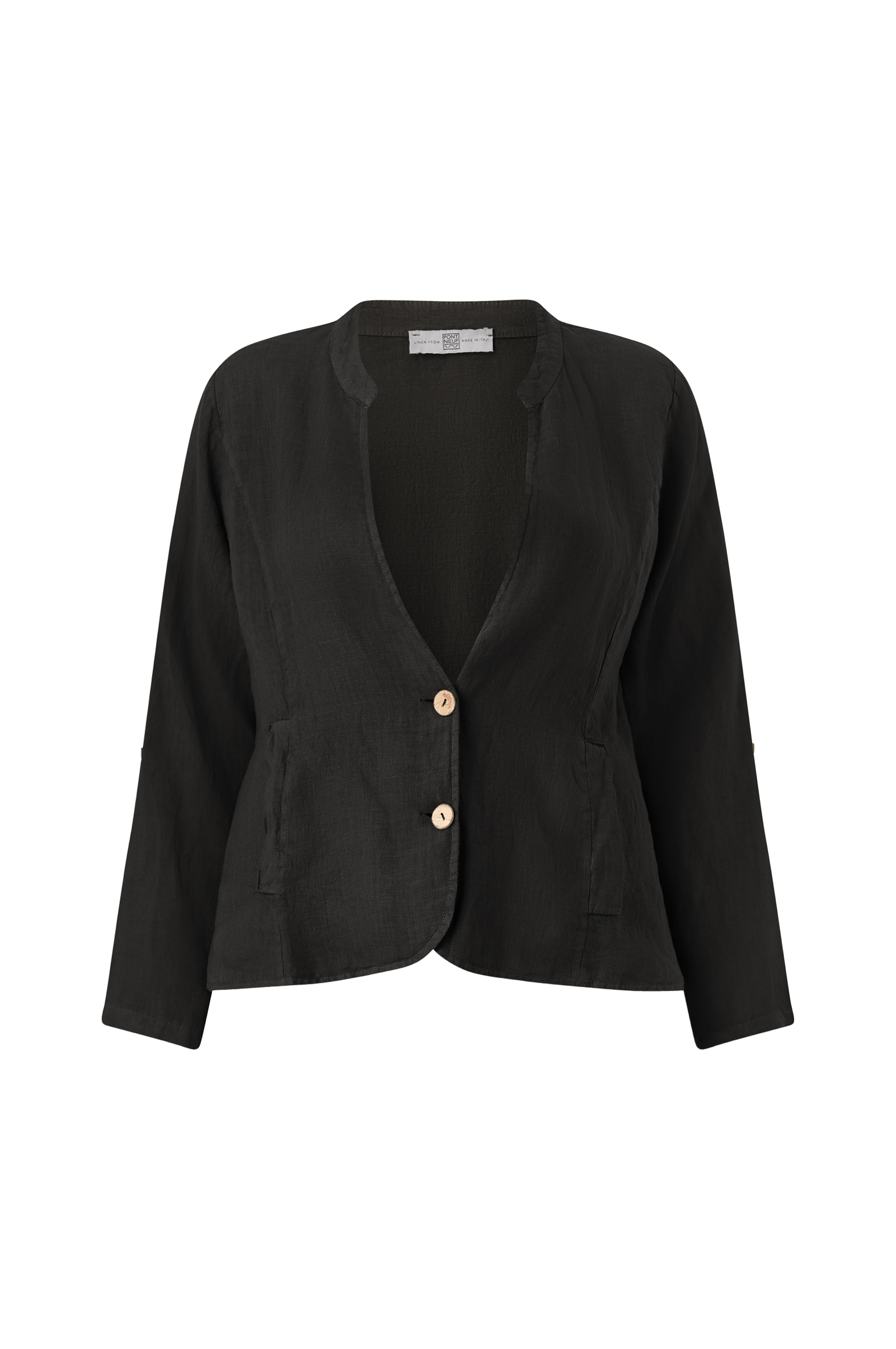 • Takki pellavasta• Syvä, v-muotoinen pääntie• Kaksi nappia alhaalla• Pitkät, ylös käännetyt hihat• Sivutaskut• Plus-koot• Pituus: 64 cm koossa M
