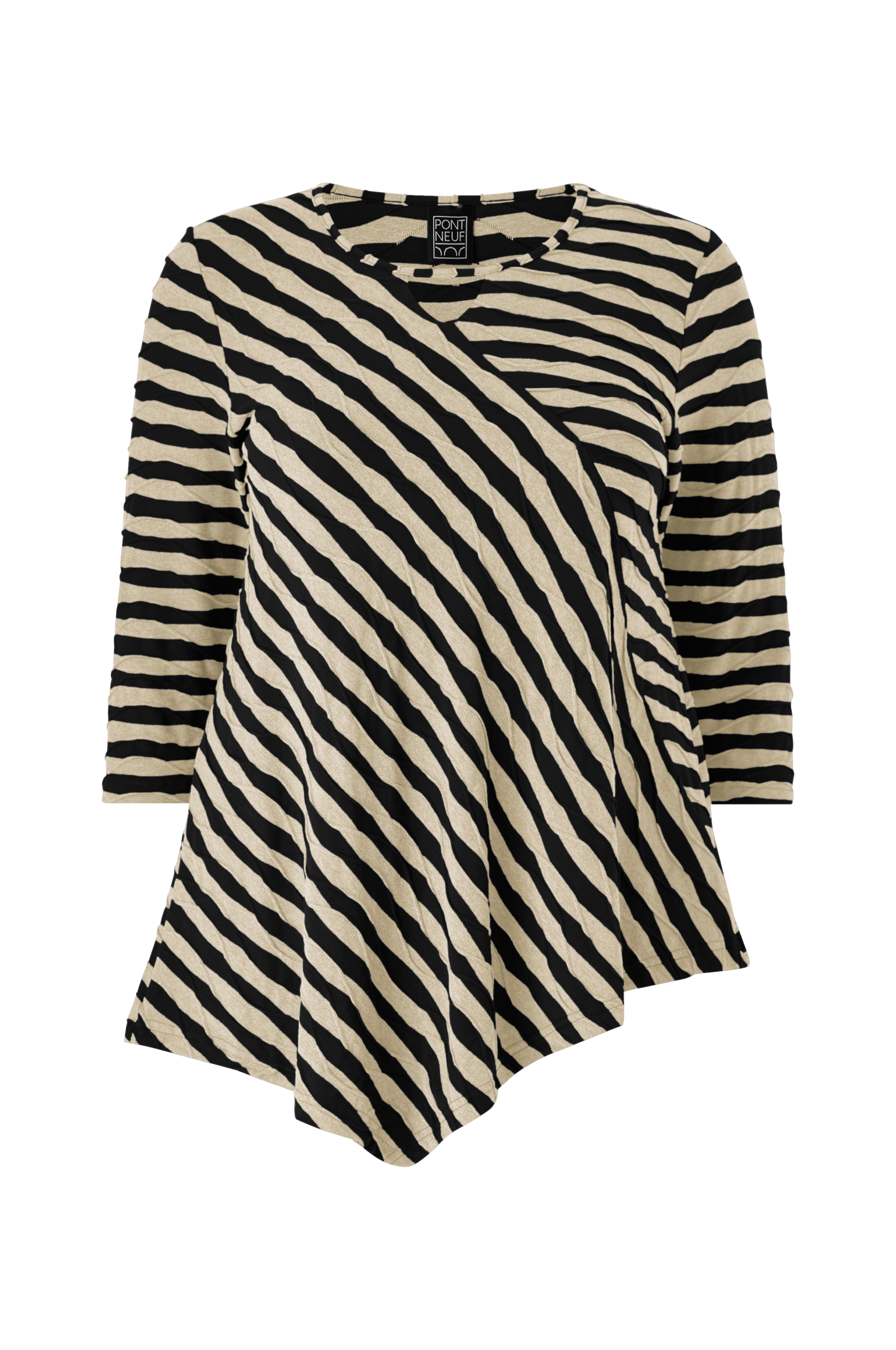 • Plus-koot• Levenevä, kuviokudottu malli• Pyöreä pääntie• 3/4-pituinen hiha• Epäsymmetrinen helma