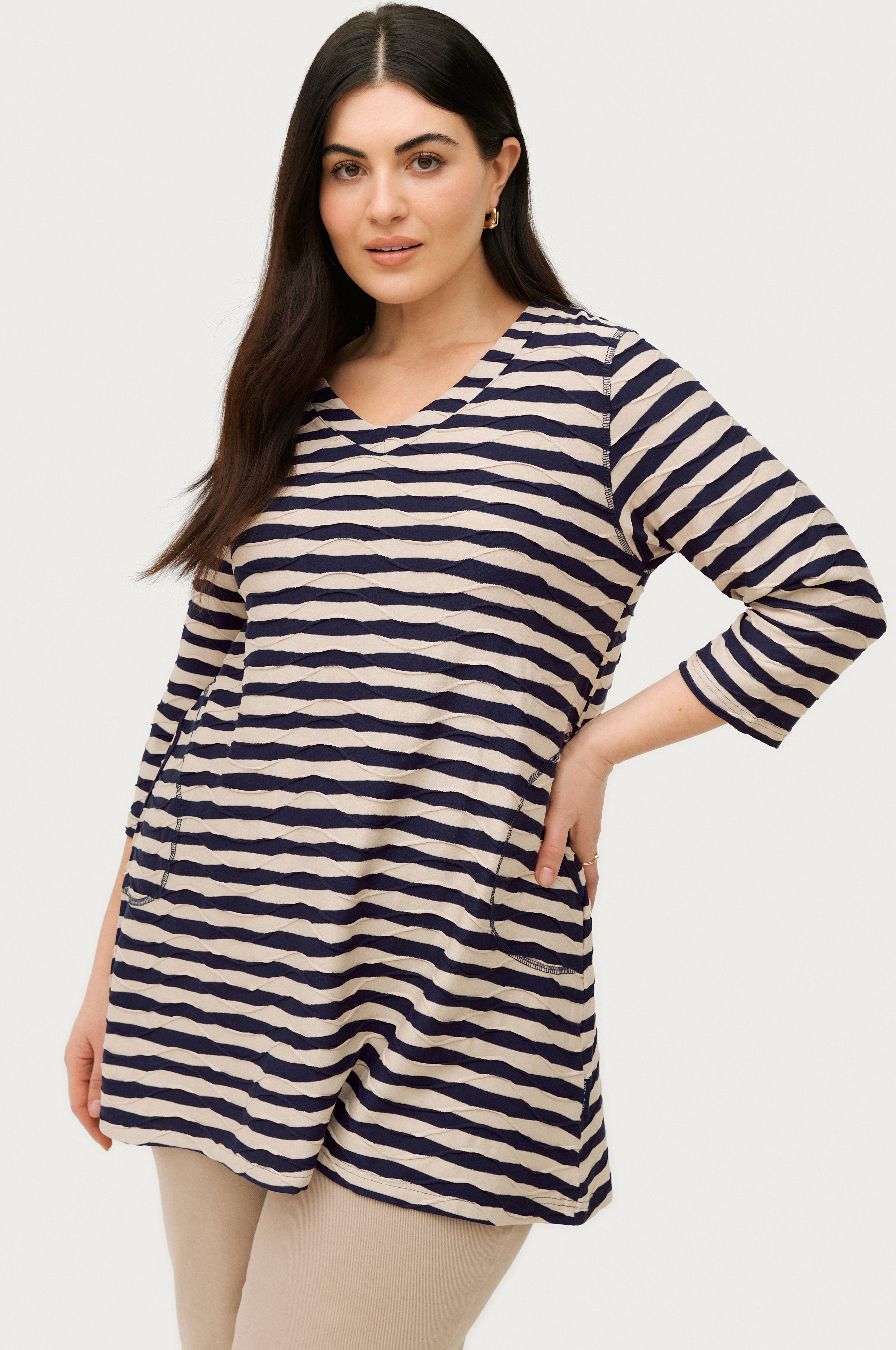 • Levenevä malli trikoosta• Koristesaumat joka puolella• V-muotoinen kaula• 3/4-pituinen, suora hihansuu• Upotetut sivutaskut• Plus-koot• Pituus: 79 cm koossa M