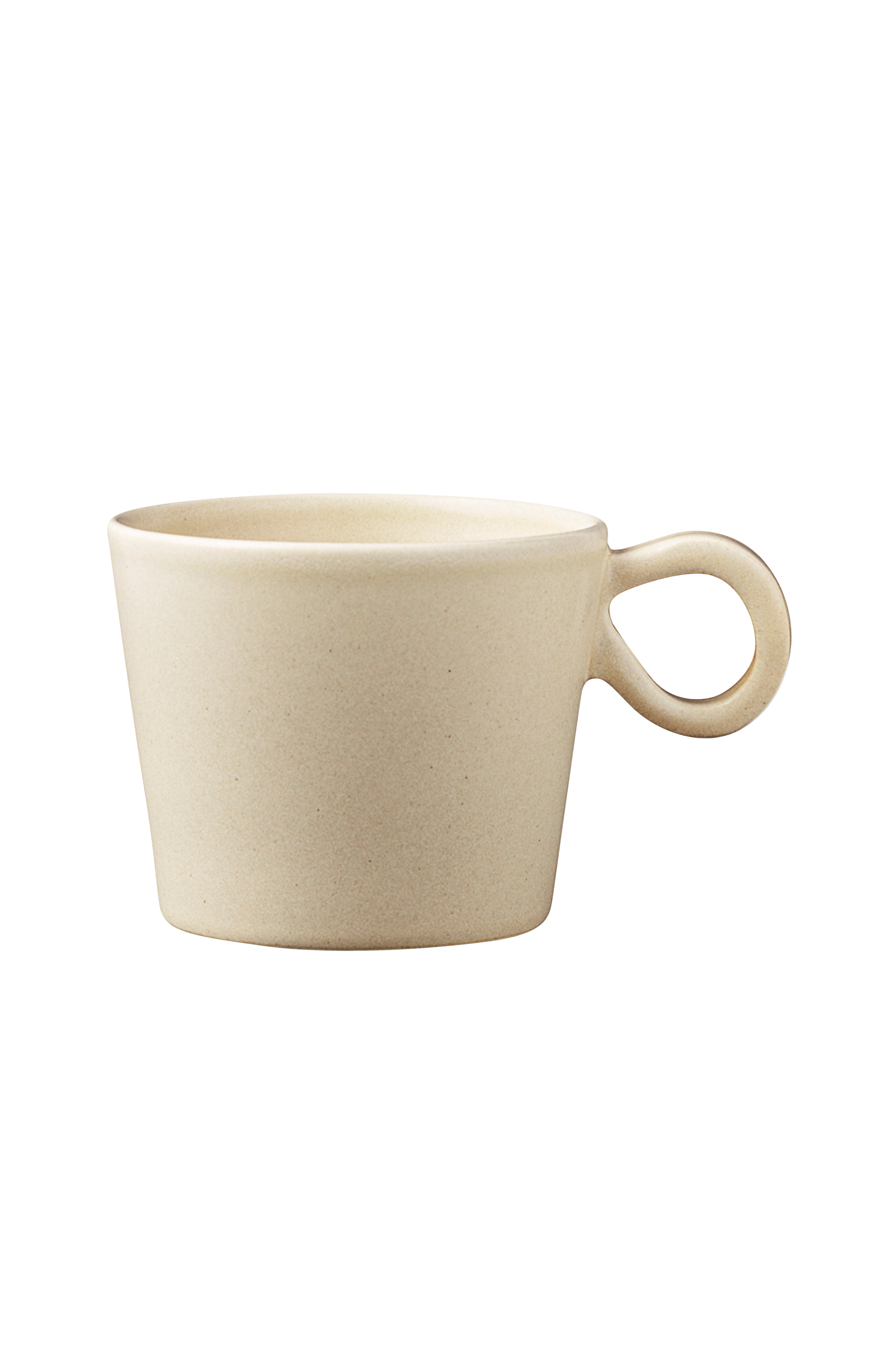 Kaunis ja tyylikäs käsintehty korvallinen kuppi kivitavaraa. Kestävät konepesun, mikroaaltouunin ja uunin. Tilavuus 28 cl.