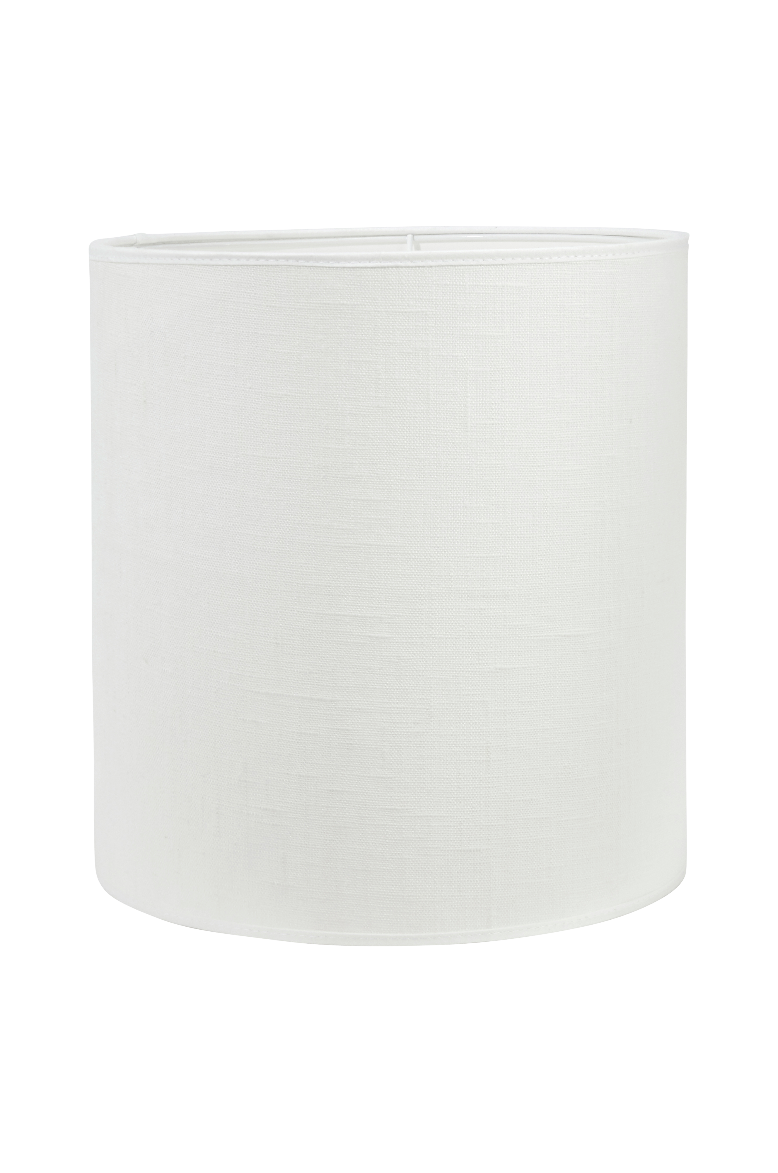 Sylinterin muotoinen pellavakangasvarjostin. Korkeus 27 cm, halkaisija 25 cm. E27.