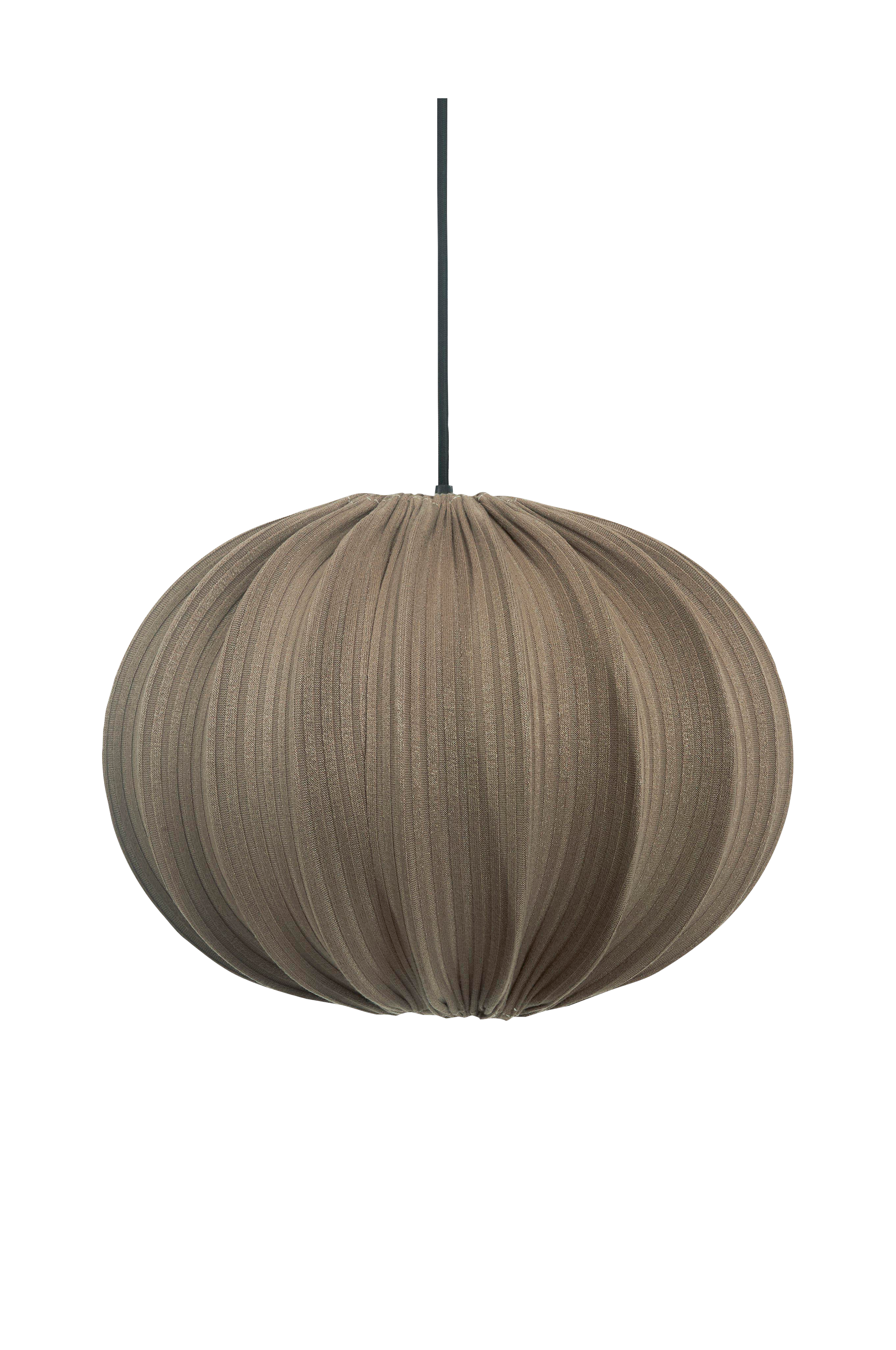 Hilma-kattovarjostin joustinneulostrikoota. Joustinneulosstruktuuri antaa kauniin valon lampun palaessa. Käytä mielellään opaalia valonlähdettä, joka luo kauniin valon varjostimeen. Osta kattojohto, kattopistoke ja valonlähde E27 erikseen.
