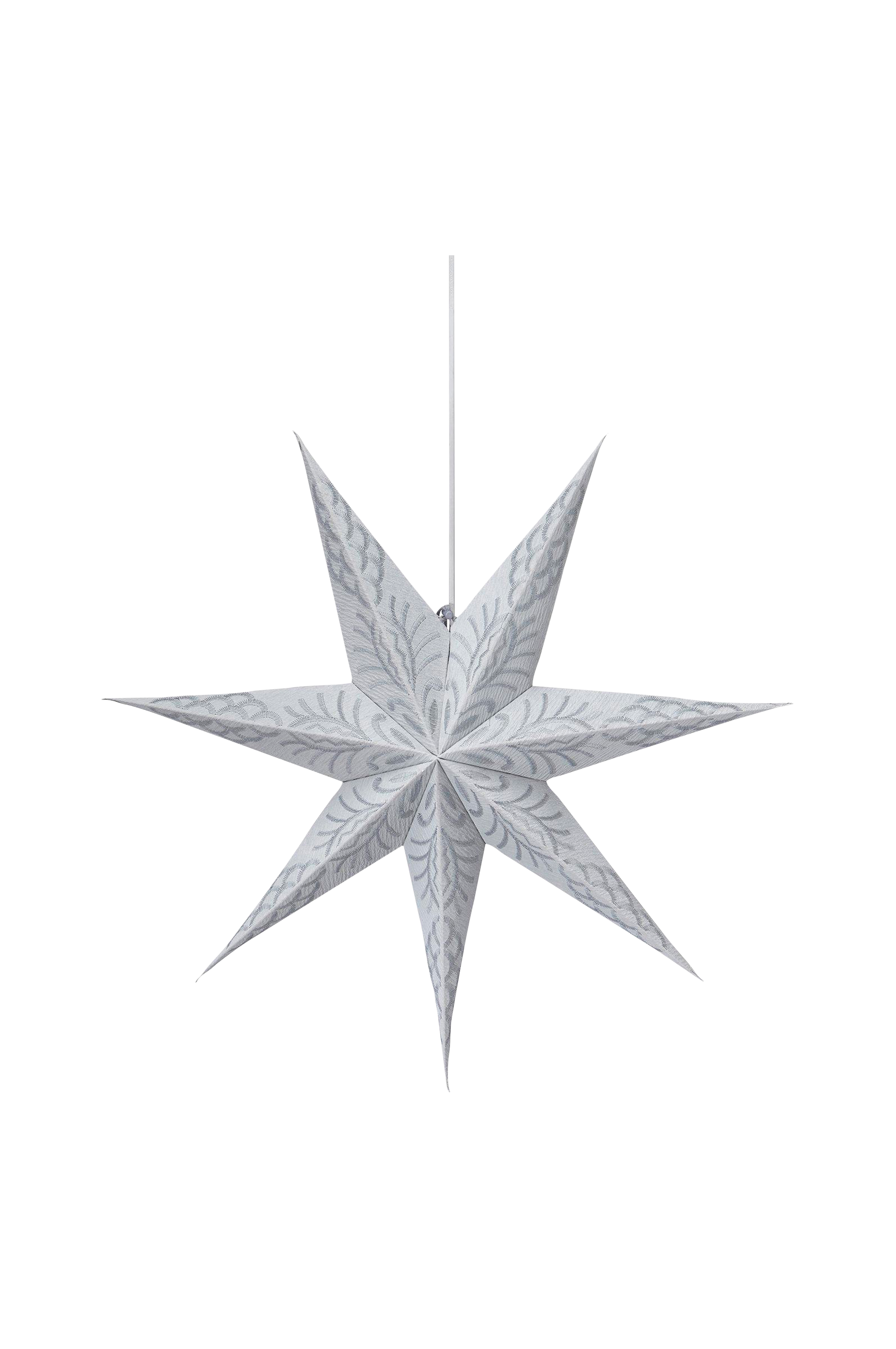 Koristetähti paksua paperia, jossa kontrastivärinen kirjailu. Tähti ripustetaan nauhan ja kiristysnyörin avulla. Tilaa erikseen E14-johtosarja ja enintään 25 watin valonlähde.