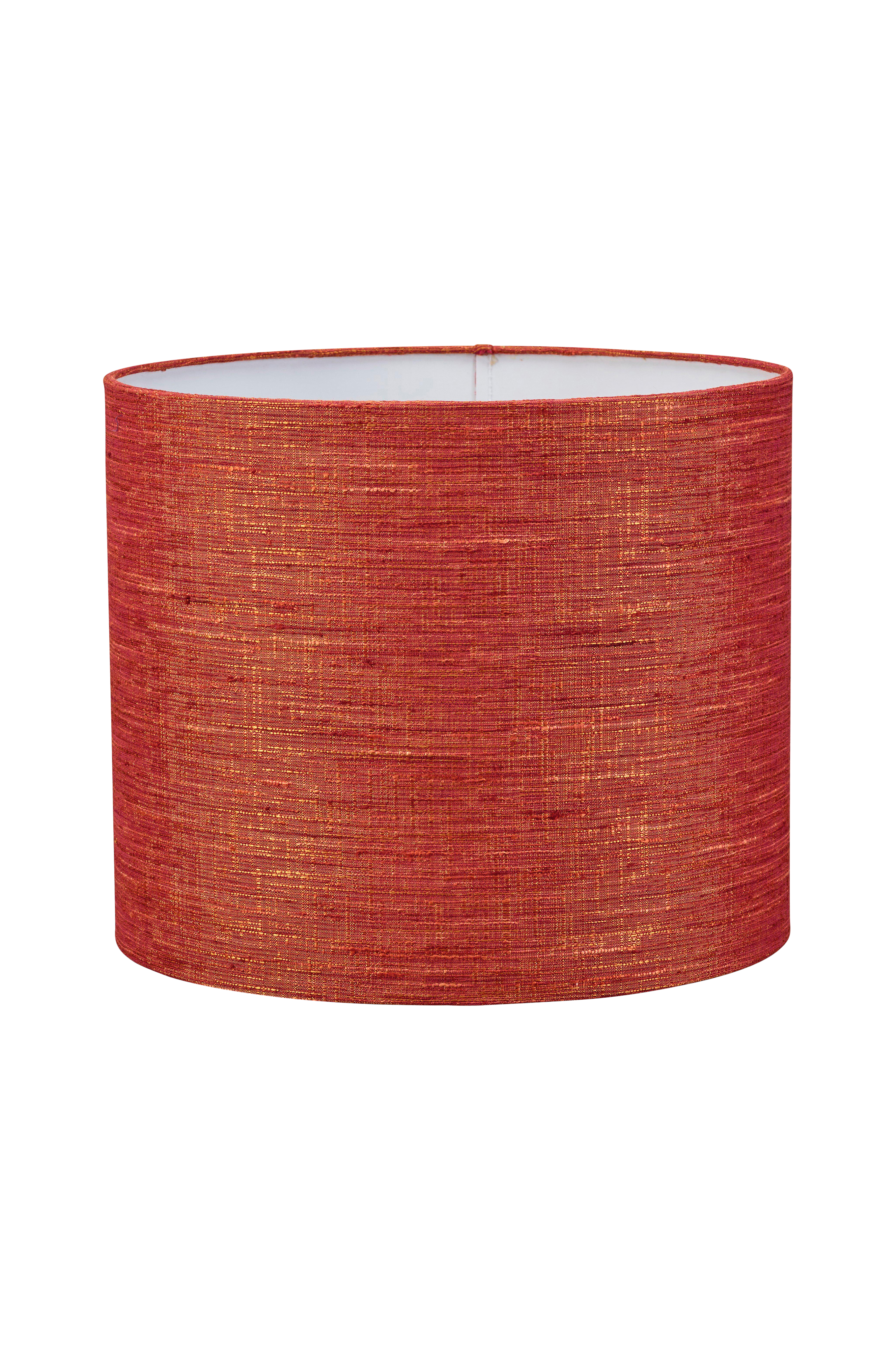 Sara-lampunvarjostin kaunista silkin näköistä kangasta. Saatavana useita eri kokoja ja värejä. Sylinterin mallisessa varjostimessa on E27-rengaskiinnike n. 3,5 cm varjostimen alareunasta. Korkeus 17 cm ja halkaisija 20 cm.