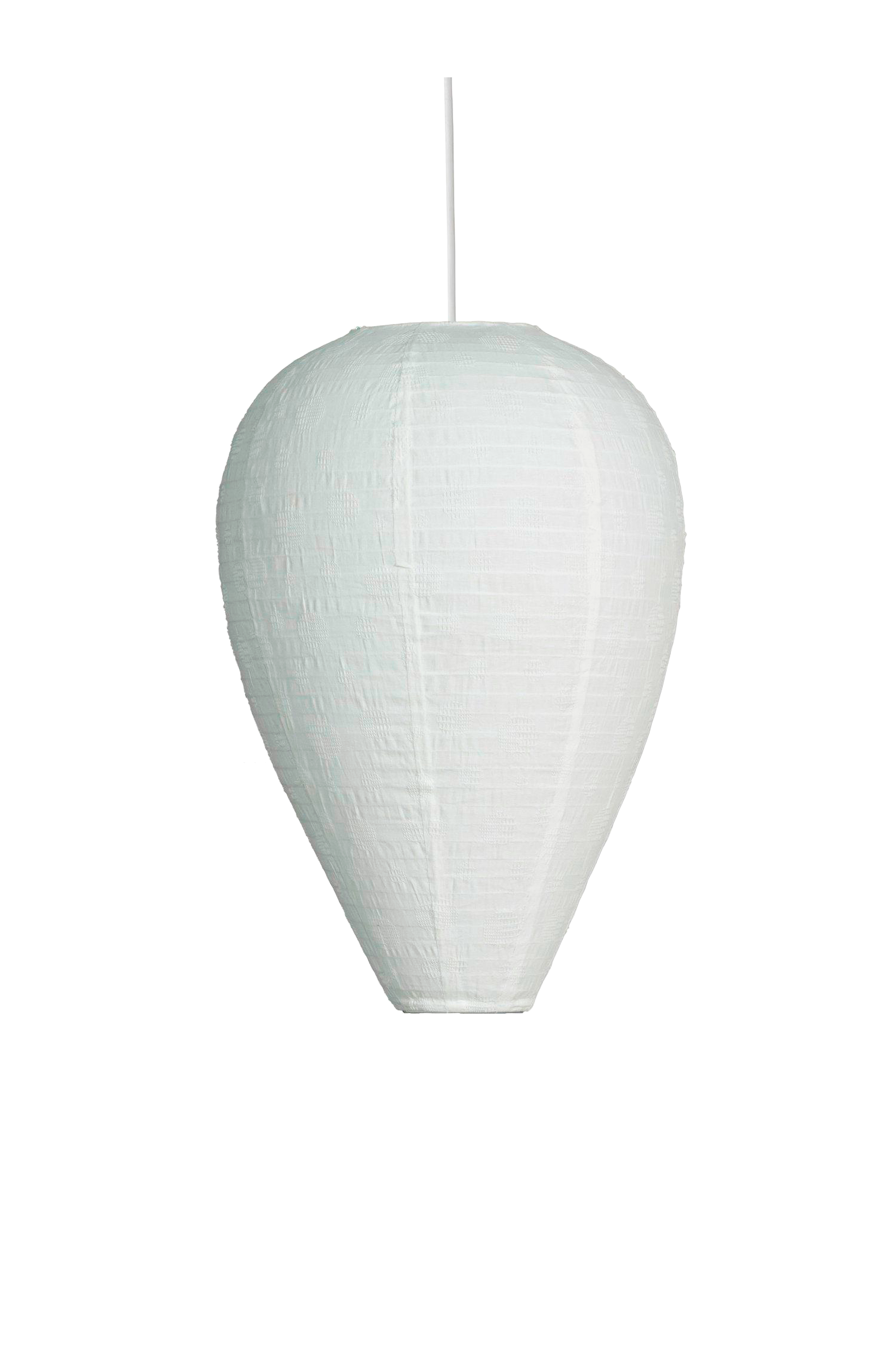 Tämä pudotuksen muotoinen kattolampunvarjostin puuvillakankaasta, jossa on hienovarainen kudottu rakenne, tuo pehmeän ja tyylikkään tunnelman mihin tahansa huoneeseen. Puhdas väri ja herkkä rakenne luovat ajattoman ilmeen, joka sopii täydellisesti sekä moderniin että klassiseen sisustukseen. Suurikokoinen, halkaisijaltaan 35 cm ja korkeudeltaan 50 cm, muodostaa kauniin keskipisteen ja hajottaa valoa pehmeästi ja miellyttävästi. Lampunvarjostin toimitetaan litteänä, ja se on helppo koota metallisella laajentimella (lampun johto ei sisälly toimitukseen). Sen pisaran muoto antaa orgaanisen ja harmonisen tunnelman, joten se sopii erinomaisesti ruokapöytien päälle tai olohuoneisiin. Tyylikäs kattovarjostin, jossa yhdistyvät muoto ja toiminta sekä hienovarainen rakenne, joka korostaa sisustusta.