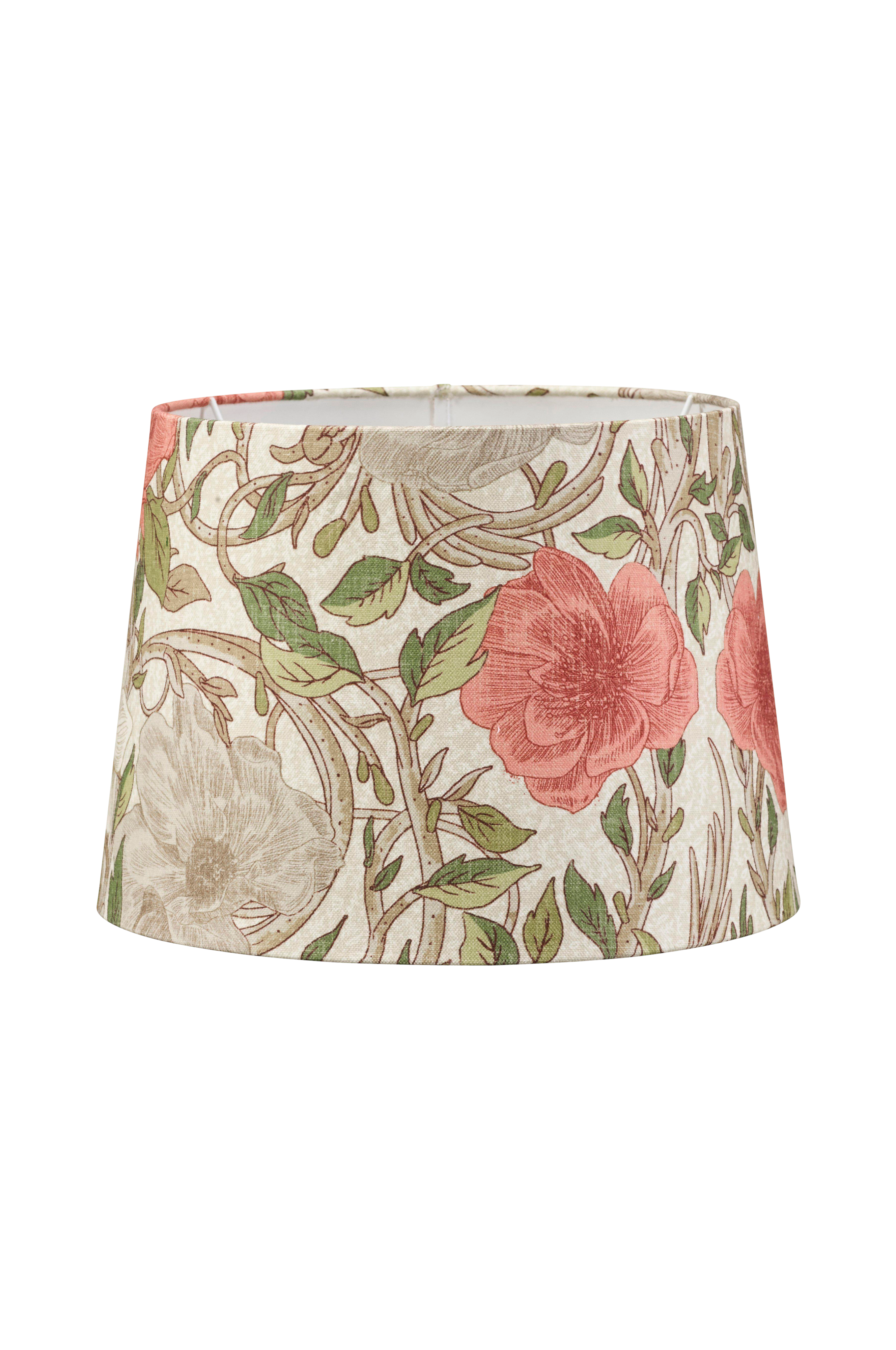 Sofia-varjostin puuvillakangasta, jossa kaunis kuvio. Pyöreä varjostin, jossa E27-rengaskiinnike. Korkeus 18 cm, leveys alhaalta 25 cm, leveys ylhäältä 22 cm.