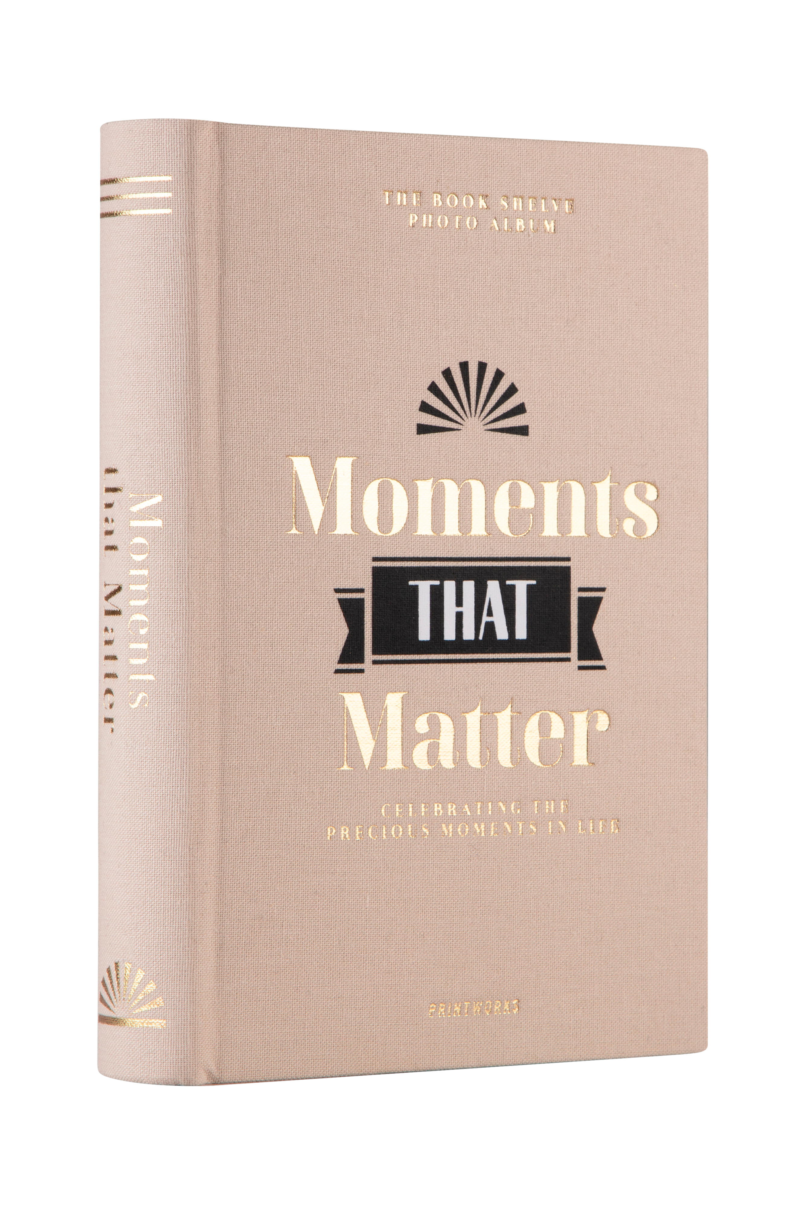 Printworksin kätevä valokuva-albumi näyttää enemmän kauniilta kovakantiselta romaanilta kuin siltä, miltä tämän kokoiset valokuva-albumit ennen näyttivät. Kankaalla päällystetty ja foliopainatuksilla varustettu albumi on kaikkien sen sisällä säilytettävien muistojen arvoinen. Albumissa on 40 luonnonvalkoista sivua, paperin paino 150 g/m2. Albumiin mahtuu yhteensä 80 valokuvaa, joiden enimmäiskoko on 11x15 cm. Valokuvat on helppo kiinnittää valokuvatarrojen tai valokuvakulmien avulla. Tilaa erikseen, eivät sisälly toimitukseen. Mitat: 14,3x20,5 cm. Syvyys 3,9 cm.