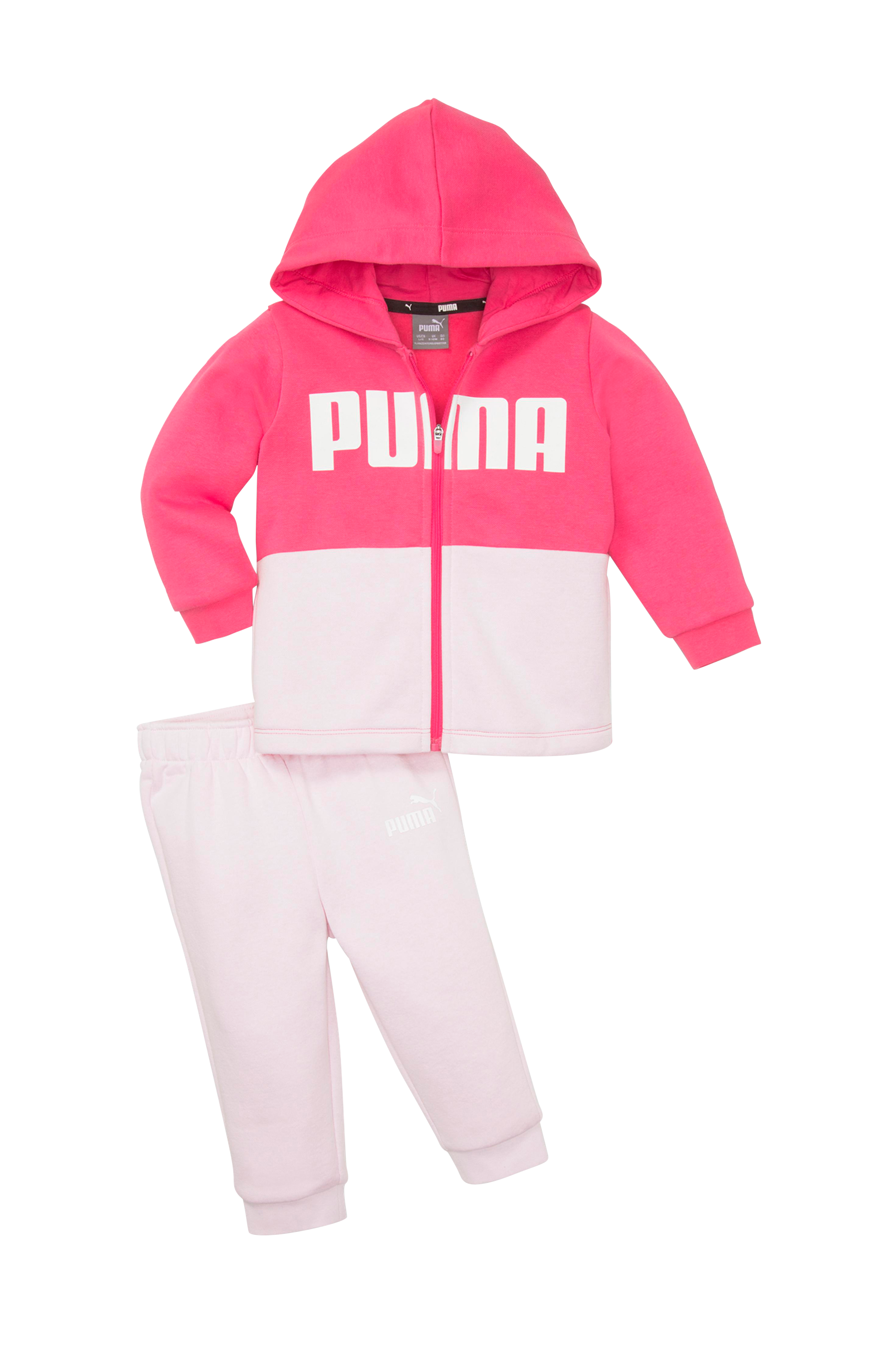 2-osainen setti, jossa pehmeäksi harjattu sisäpinta. Hupullinen collegetakki, jossa vetoketju ja painettu logo edessä. Hihansuissa resori. Housuissa joustava vyötärö ja resori lahkeensuissa.