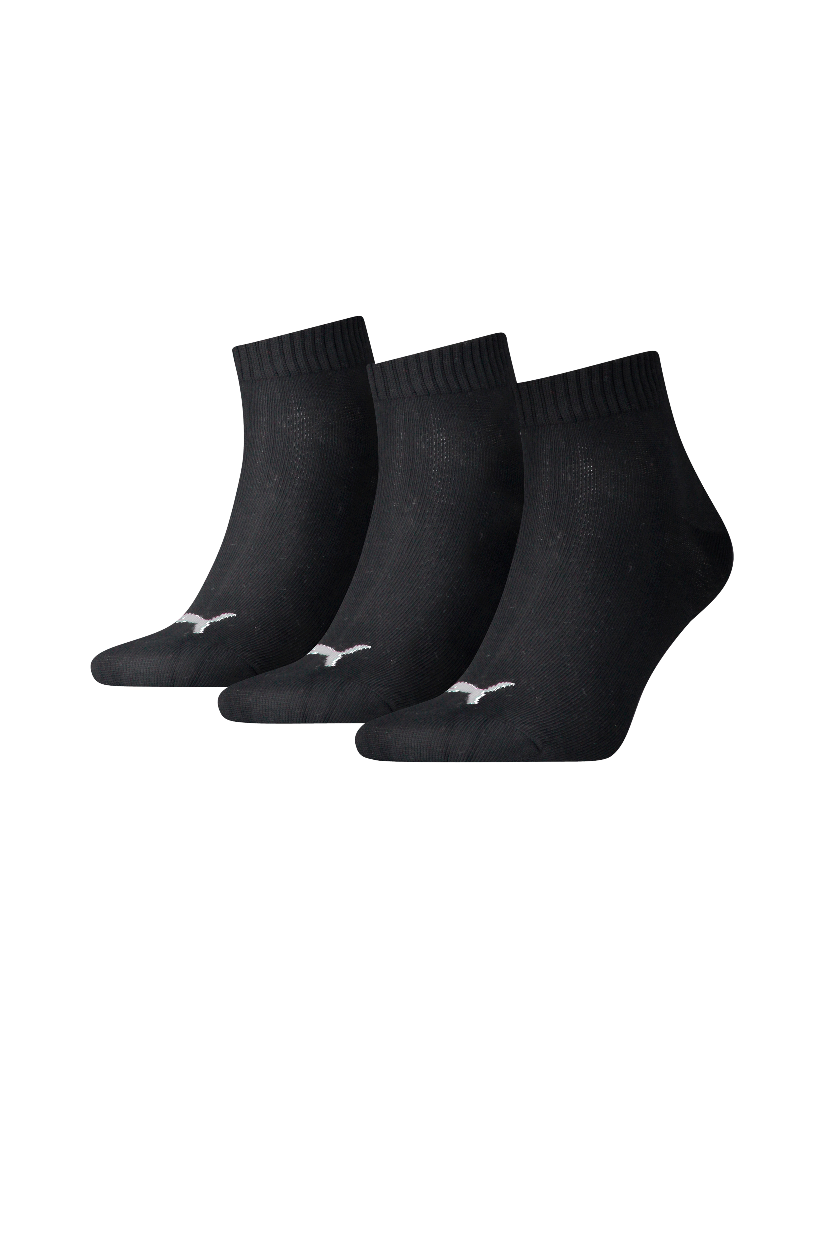 Urheilulliset Puma Unisex Quarter Plain -sukat, 3 paria. Joustinneulosvarsi, jossa Puma-logo. Litteät, hiertymiä ehkäisevät saumat kärjessä.