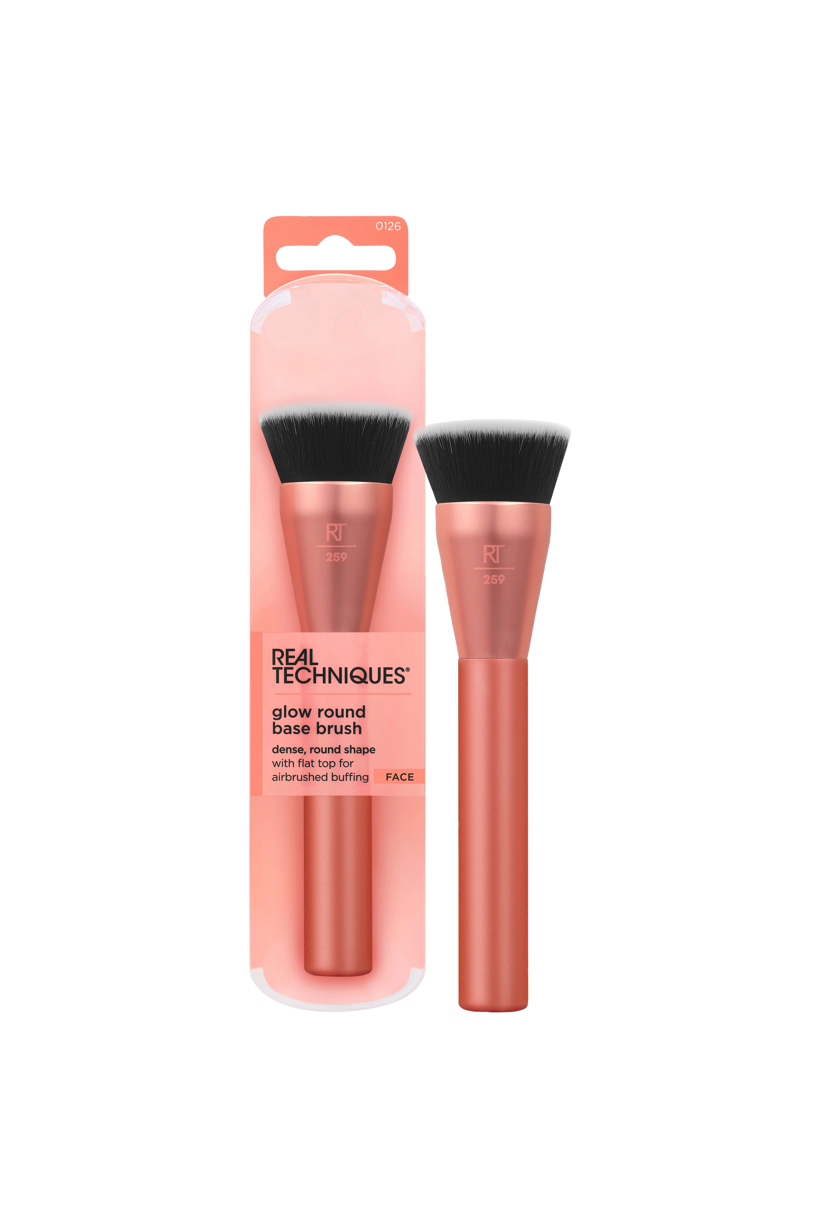 Real Techniques Glow Round Base Makeup Brush -meikkivoiteessa on round, litteä pää, jonka avulla meikkivoide on helppo levittää ja häivyttää tasaisen, ilmavasti sivelletyn meikkivoiteen base. 259 meikki brush'n tiheä, litteä pää kiillottaa suuren pinta-alan ja häivyttää kasvojen ja kaulan vaikeasti saavutettavat kohdat. Meikkivoide brush sopii parhaiten nestemäisten ja voidemaisten meikkivoiteiden tai pohjamaalien kanssa, jotta saat kattavan meikin. Maksimaalinen poiminta, tarkka levitys ja kohdennetut muodot - tämä kolminkertainen uhka muotoilu tasoittaa päivittäisen rutiinisi. base brush sisältää New räätälöity round pään muodon, jossa on flatop ja UltraPlush, korkealaatuiset, tiheät harjakset maksimaalista poimintakykyä ja levitystä varten. Kuten kaikki Rt tuotteemme, tämäkin meikkivoide brush on 100-prosenttisesti vegaaninen ja julmuudesta vapaa.