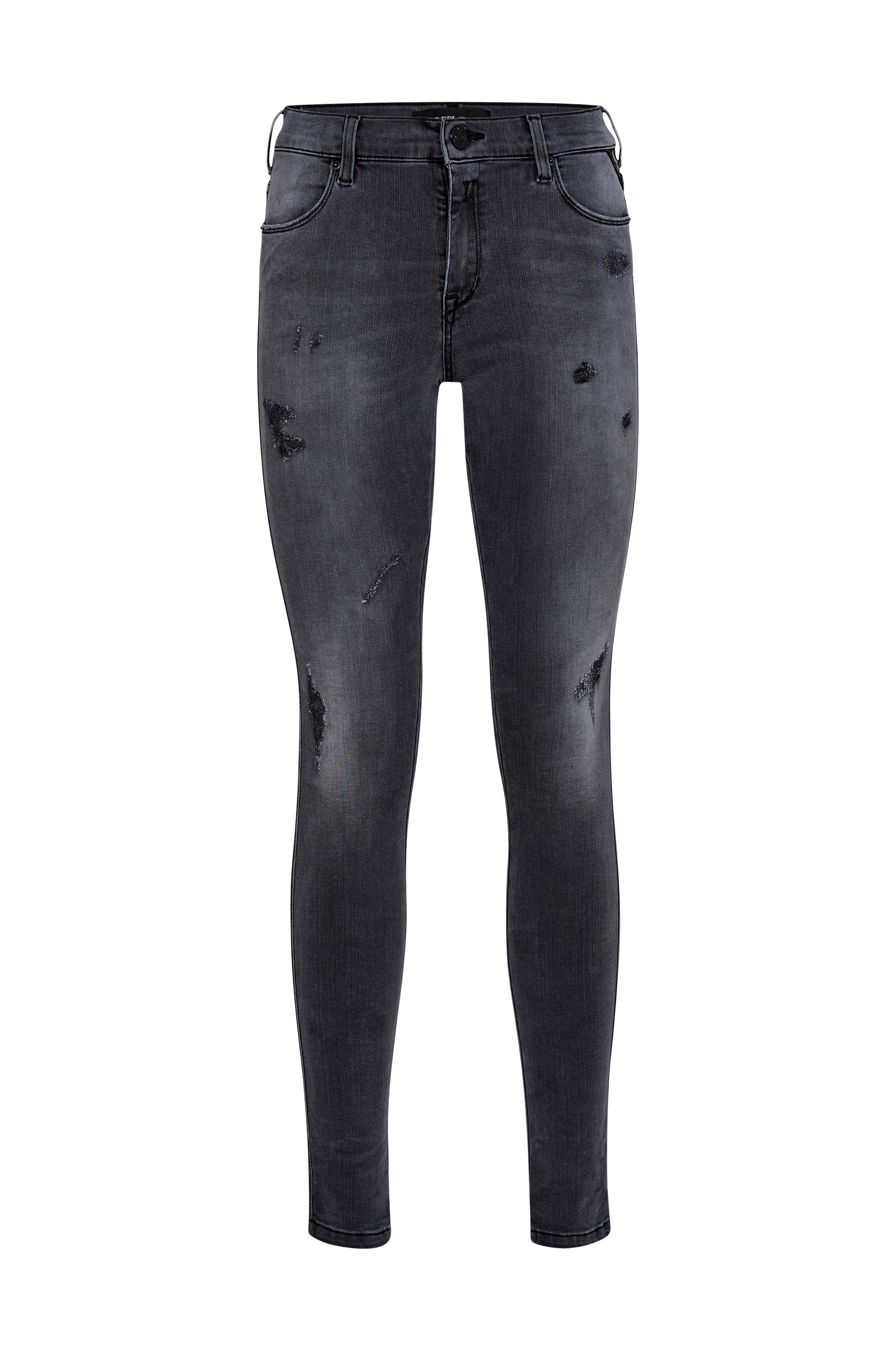 Replay Stella Hyperflex Slim -farkut. Kapea malli erittäin joustavaa denimiä, jossa kulutukset ja paikkaukset. Kapeat lahkeet ja kapeat lahkeensuut. Korkeahko vyötärö, kaksi etutaskua ja kaksi takataskua.