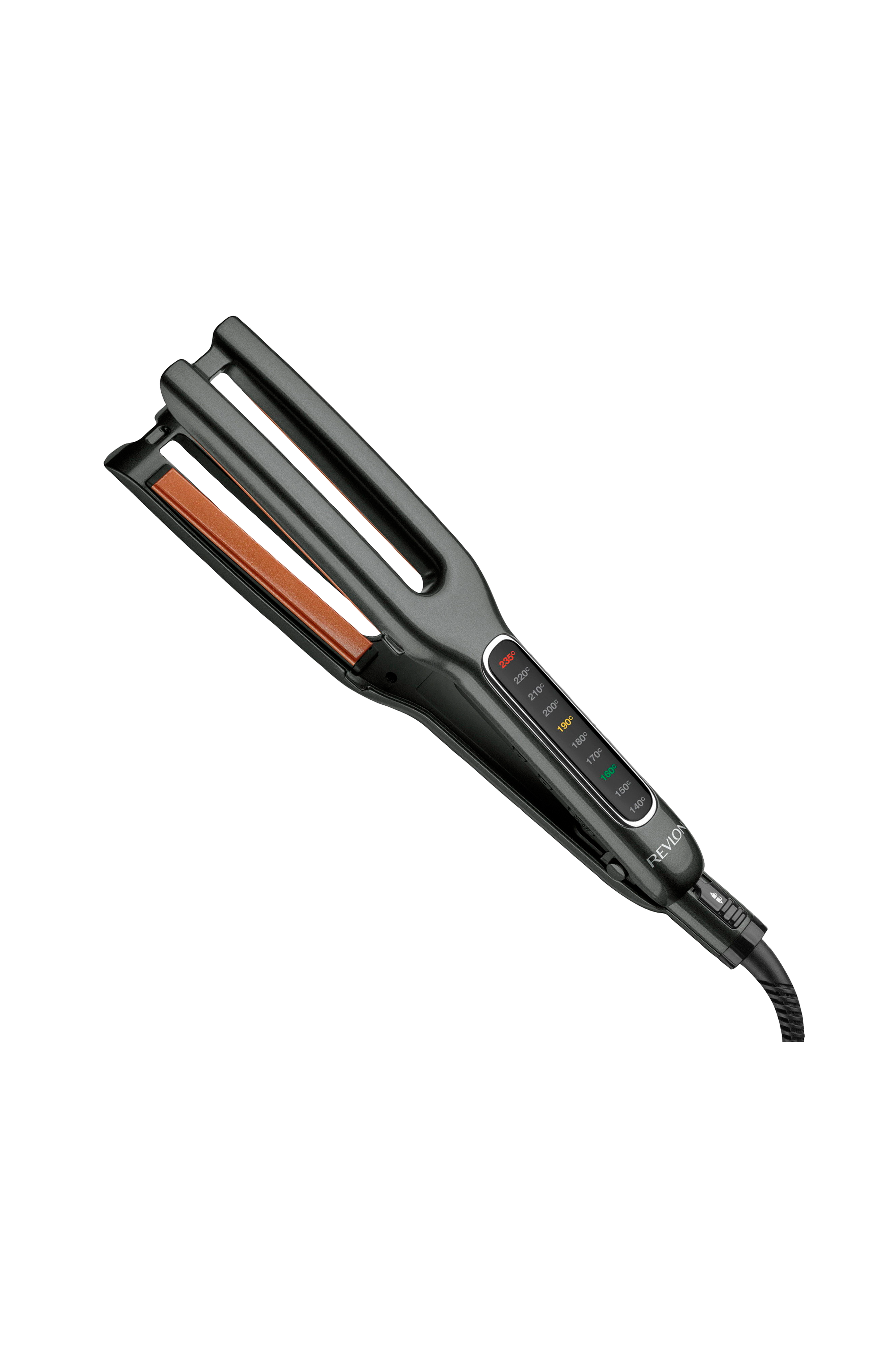 Revlon Double Straight on vallankumouksellinen suoristusrauta, jossa on innovatiivinen muotoilu. Kaksi levyä antavat kaksi kertaa suuremman suoristusvoiman yhdellä ainoalla vedolla. Ensimmäinen levy suoristaa hiukset ja toinen levy tekee hiuksista tavallista pehmeämmät ja suoremmat. Lämpöä ei mene hukkaan, mikä antaa nopeamman tuloksen lyhyemmässä ajassa. Hiuksista tulee silkinpehmeät ja terveemmän näköiset.