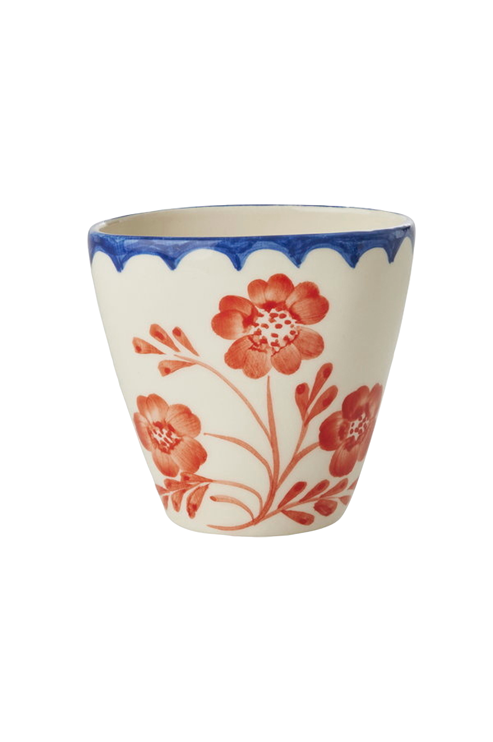 Nauti aamukahvisi tässä soikeassa keraamisessa mukissa, jossa on kauniita vintage-henkisiä kukkayksityiskohtia. Ryhmä upeita portugalilaisia naisia on maalannut mukin käsin, joten jokainen muki on todella ainutlaatuinen. Meidän mielestämme se on niin viehättävä! Mahdollisten rengasjälkien tai puupöytien vaurioitumisen välttämiseksi suosittelemme käyttämään aluslevyä, kun laitat kuumia juomia keraamisiin kuppeihin tai mukeihin. Kuumuus voi joskus aiheuttaa kosteuden tunkeutumista pintaan, mikä voi ajan myötä jättää jälkiä. Suojaa huonekalusi tällä yksinkertaisella toimenpiteellä!