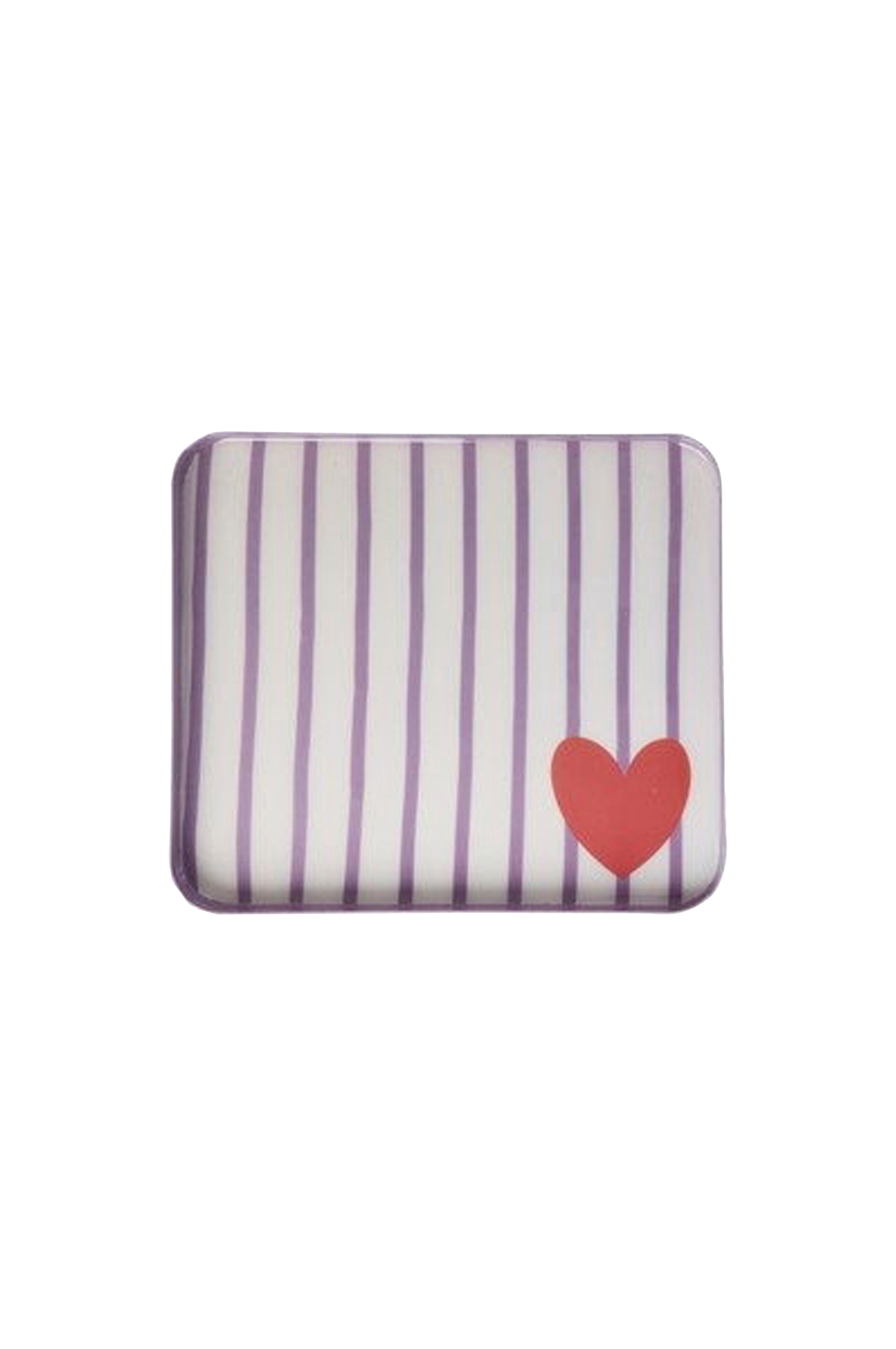 Kaunis metallinen tarjotin, jossa on raitoja ja sydän. Käytä sitä ihanan välipalan tarjoiluun, sänkykahvin tarjoiluun rakkaallesi tai koristeellisen esillepanon luomiseen kynttilänjaloilla, pienillä maljakoilla ja kukilla. Tämä tarjotin ei sovellu astianpesukoneeseen, vaan se tulee pestä käsin. Tarjottimen koko on 21,5 x 18,5 cm.