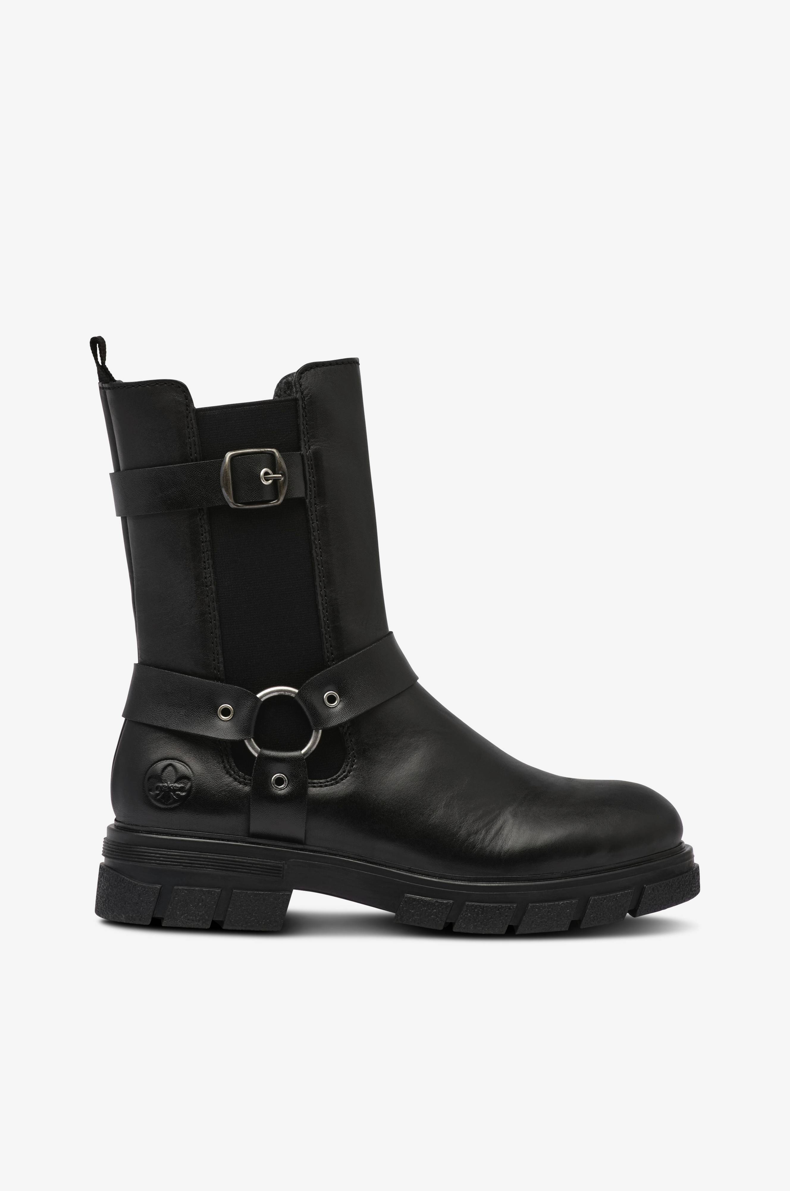 • Vuoratut biker-bootsit nahkasta• Vetoketju varren sisäpuolella• Joustopaneeli varren ulkopuolella• Koristeelliset hihnat varren ympärillä• Lämminvuori fleeceestä• Ulkopohja kumista• Varren korkeus: 19 cm koossa 37
