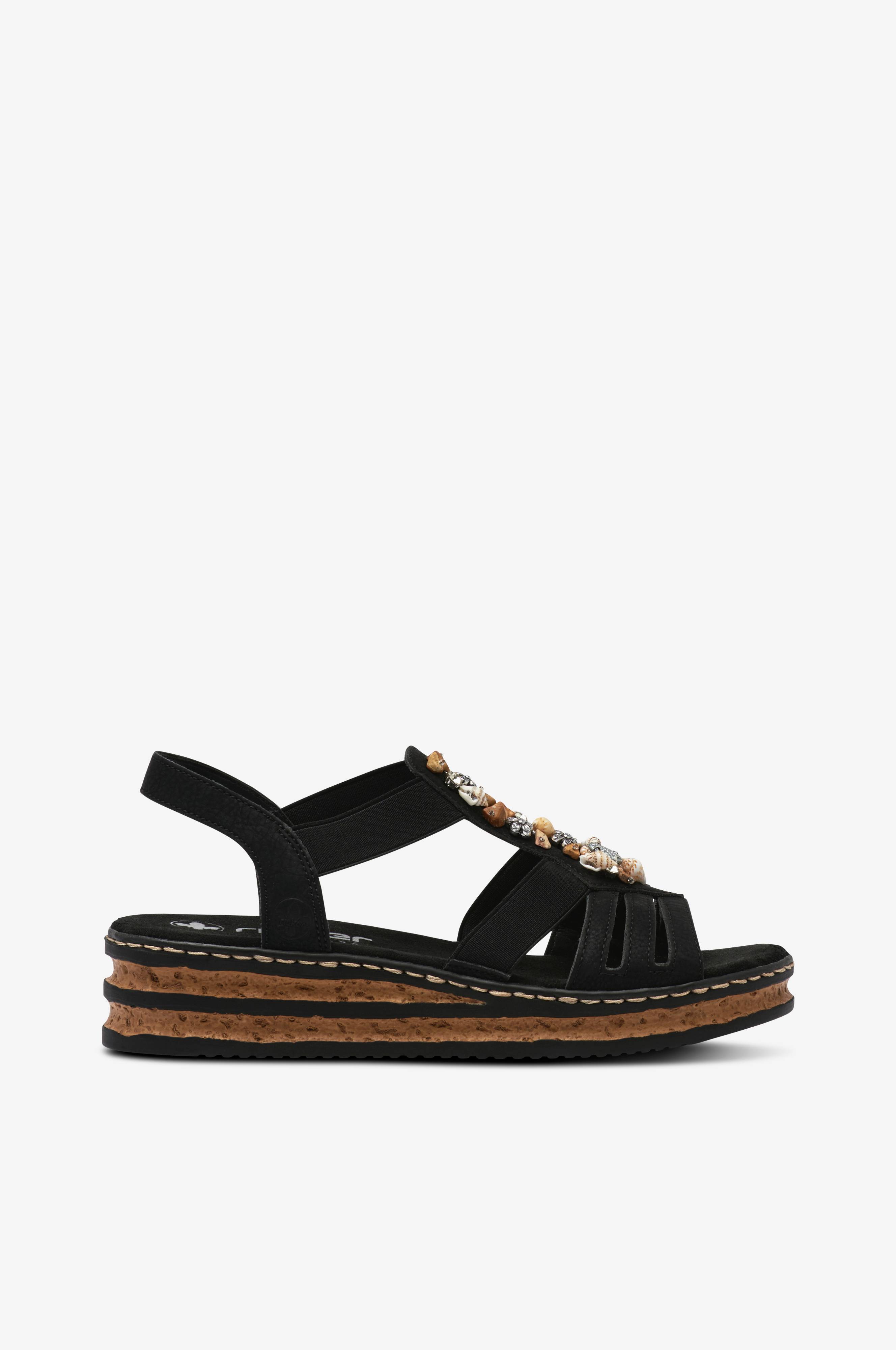 • Malli mokkajäljitelmästä ja tekstiilistä• Koriste jalassa• Elastiset hihnat• Kiilakorko• Pehmeästi vuorattu sisäpohja• Koron korkeus: 4 cm