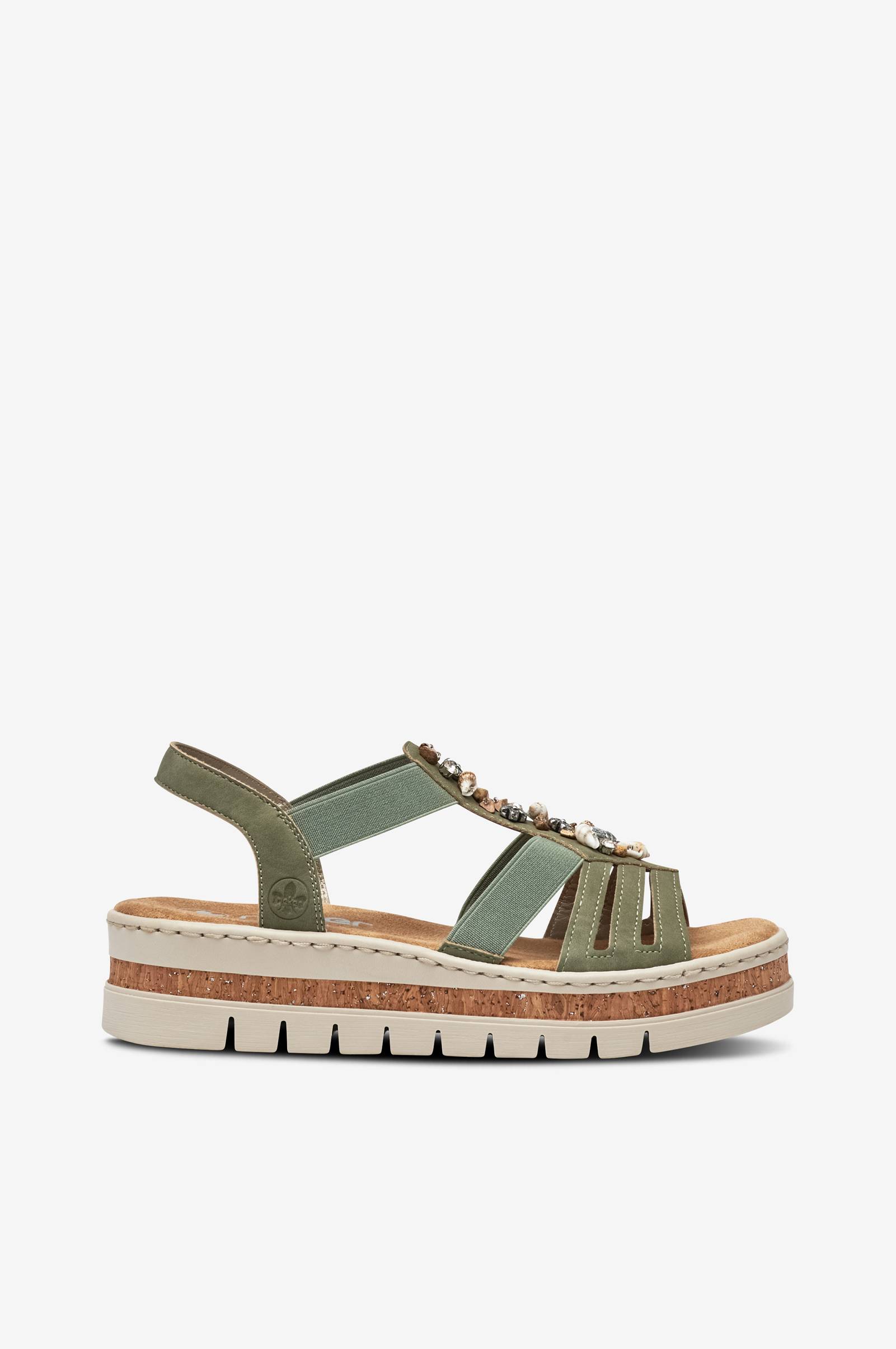 • Sandaalit mokkajäljitelmästä elastisilla hihnoilla jalan yläpuolella• Koriste jalassa• Matala kiilakorko• Pehmeä, tukeva Rieker Antistress -pohjallinen.• Koron korkeus: 4,5 cm