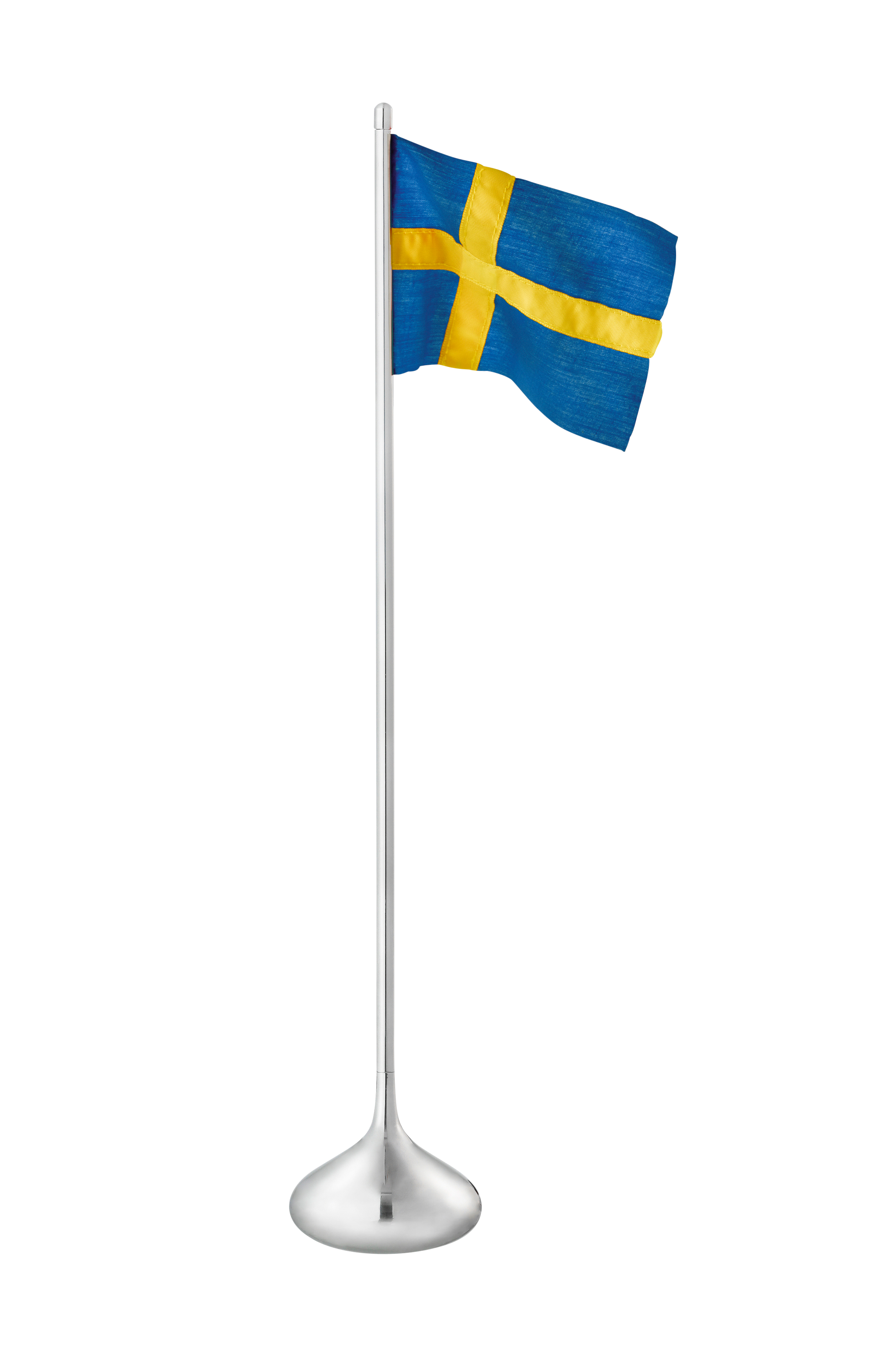 Rosendahl-pöytälippu on tyylikäs pöydällä. Lippu on kiinnitetty kiiltävän lipputangon sisään. Ei näkyvää nyöriä. Lipputangon pituus on 35 cm, ja siinä on hieman pyöristetty pohja, jotta lippu voi heilua kevyesti.