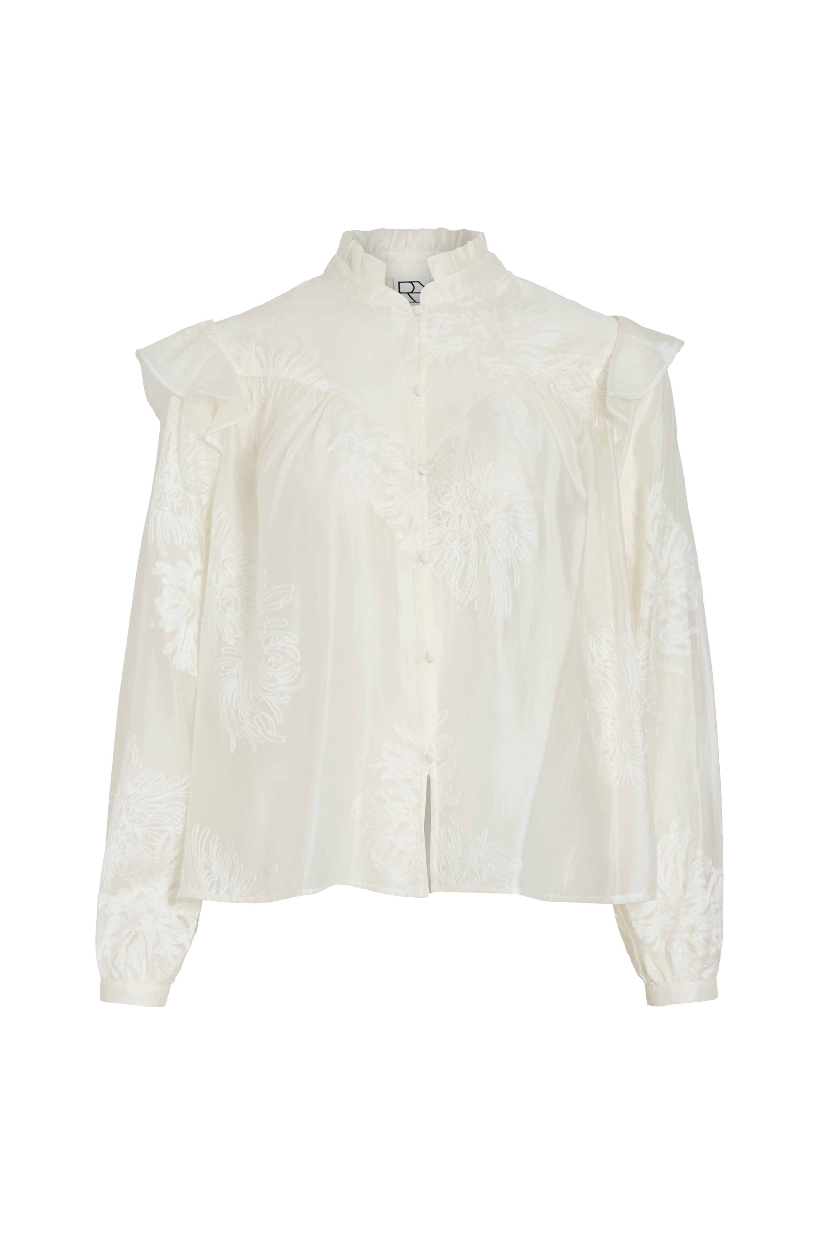 • Läpinäkyvä pusero kirjailuilla kauttaaltaan