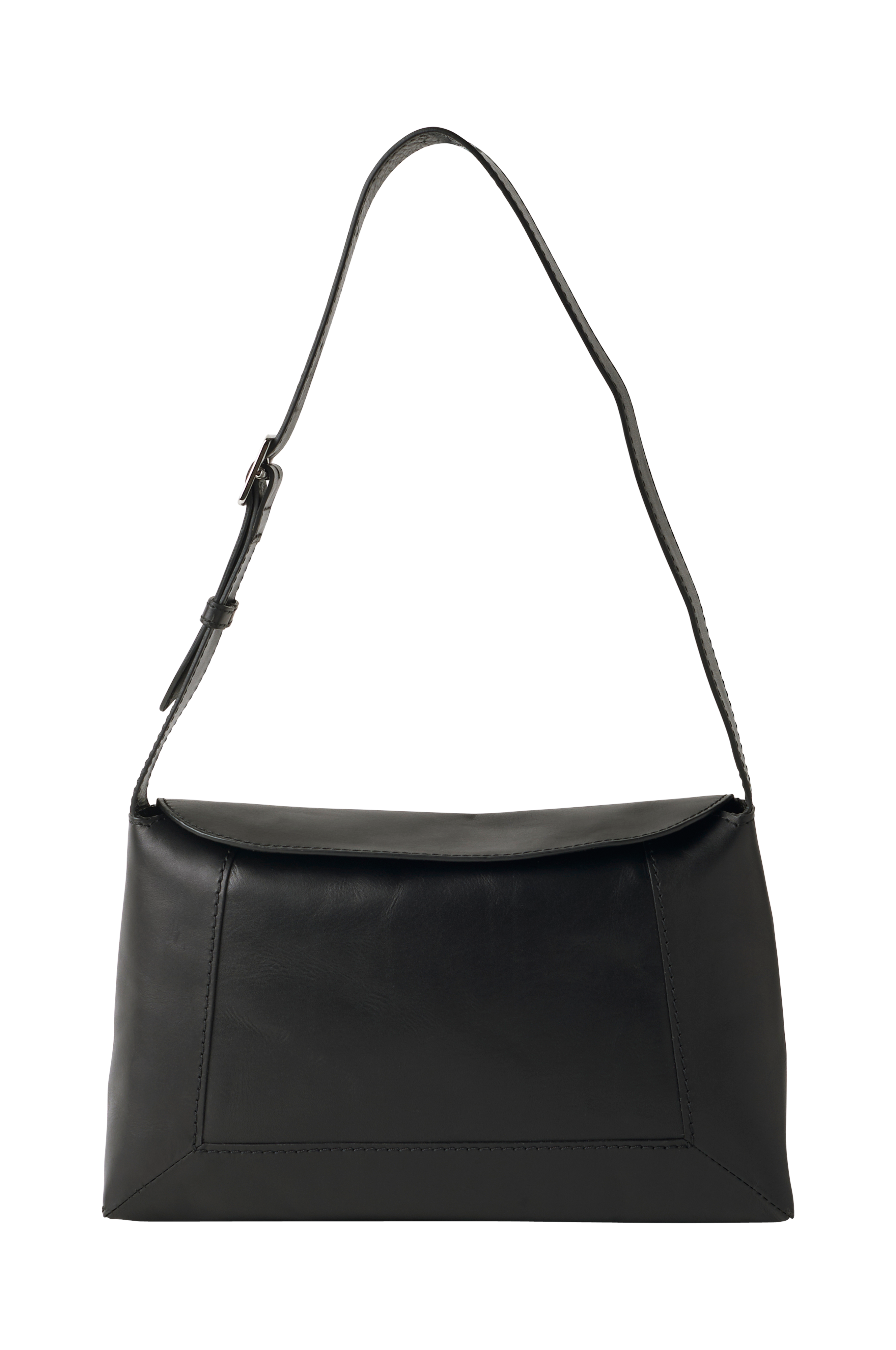 Olkalaukku, jossa lyhyt ja leveä olkahihna. Tyylikäs malli sileää full grain -nahkaa. Laukussa on voimakas magneettisuljenta. Sisäpuolella on avolokero ja vetoketjutasku. Vaalea kangasvuori. Olkahihnassa on koristeena tyylikäs kiiltävä hopeanvärinen metallisolki. Mitat: L 29 x K 17 x S 17 cm.