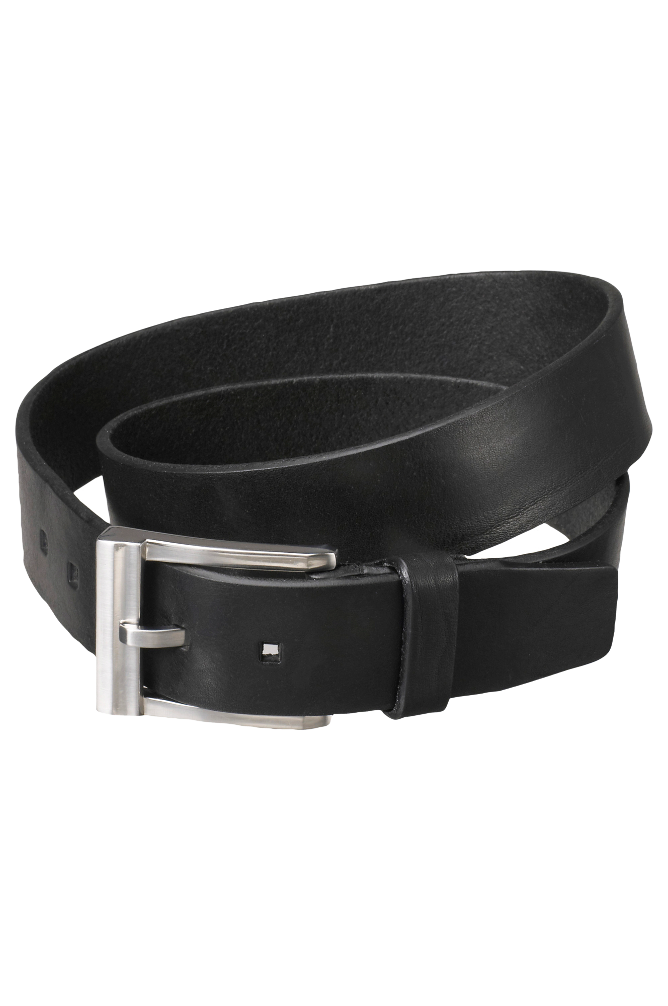 Jämäkkä nahkavyö. Isohko, hopeanvärinen metallisolki. Leveys n. 40 mm.