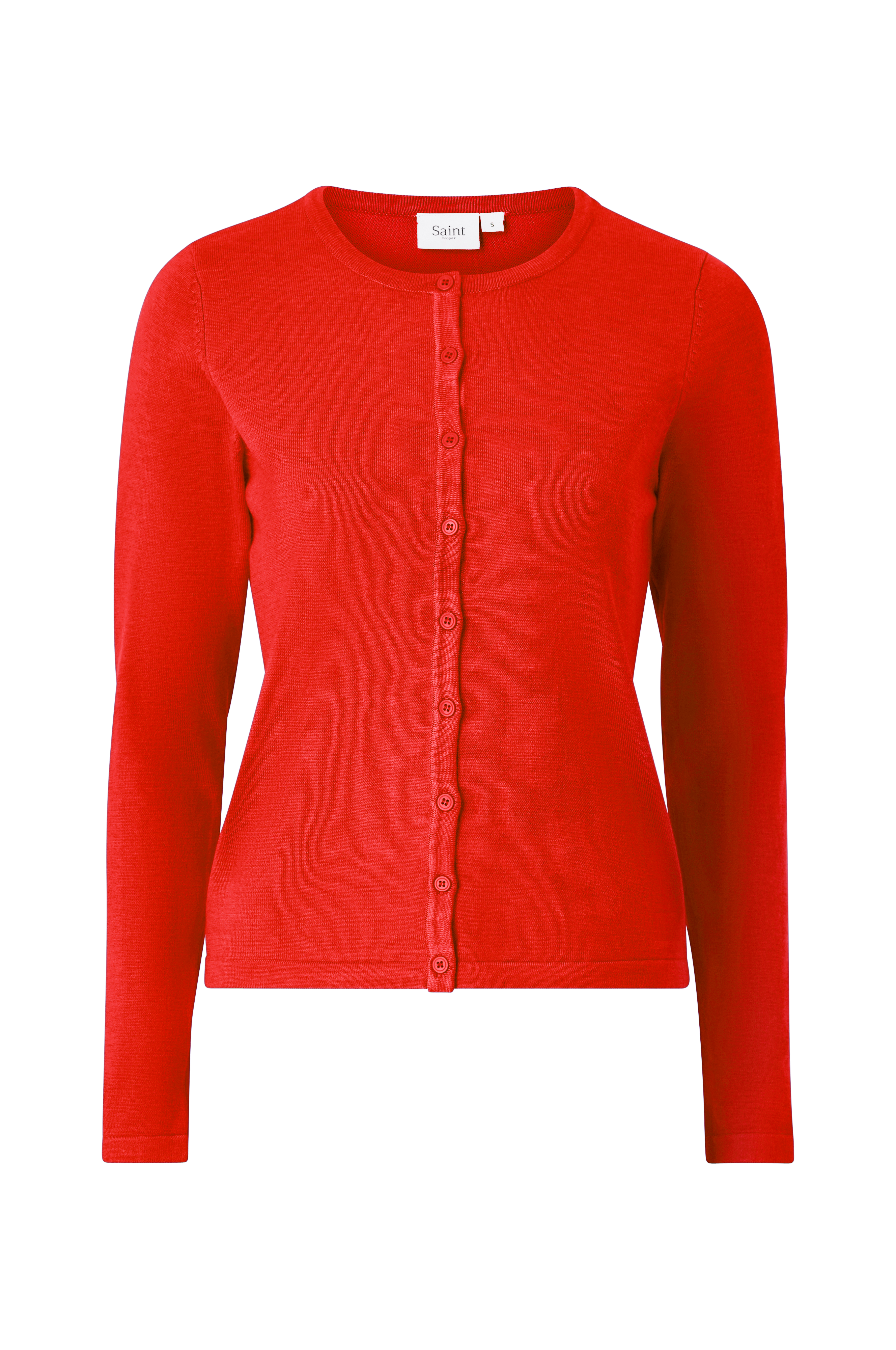 Saint Tropez -neuletakki ohutta sileää neuletta. Hieman vartalonmyötäinen malli, pyöreä pääntie ja kokopitkä napitus edessä. Kapea joustinneulereuna pääntiessä ja nappilistassa. Pituus n. 58 cm koossa M.