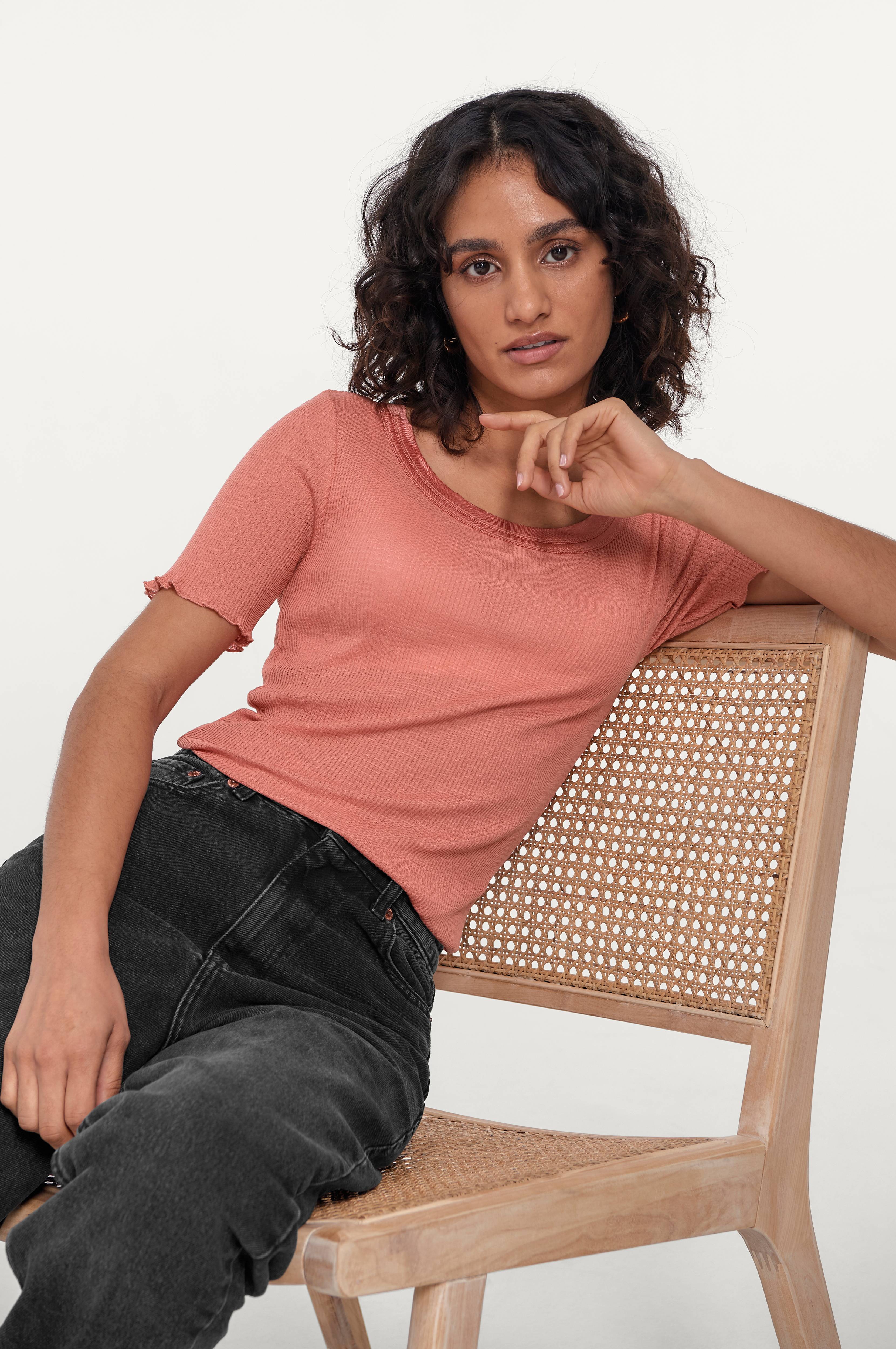 Saint Tropez GloriaSZ SS T-shirt -pusero, jossa vartalonmyötäinen malli puuvillasta ja silkistä valmistettua trikoota, jossa pintakuvio. Aaltomainen reuna hihansuissa ja helmassa.