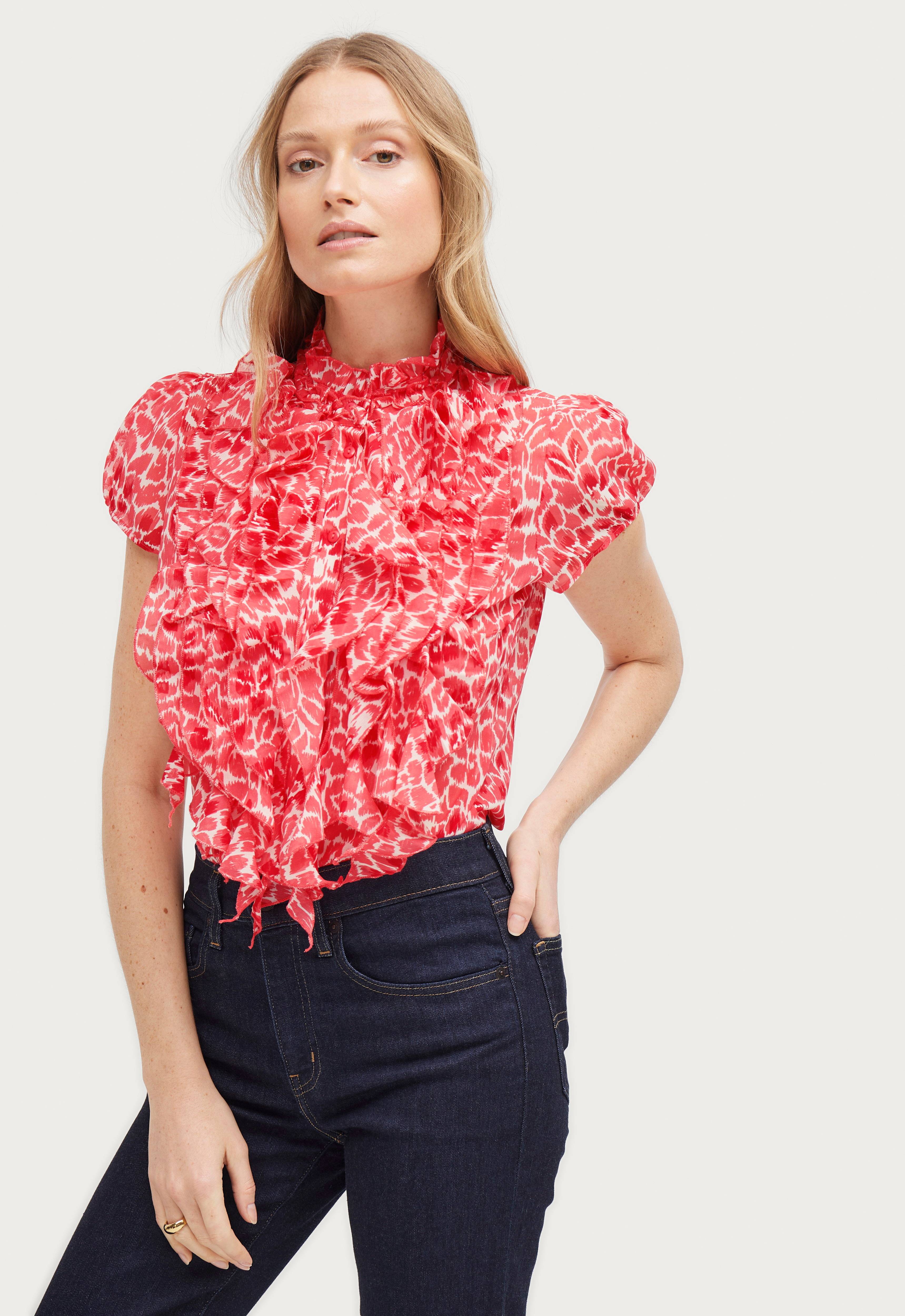 Saint Tropez LillySZ SS Shirt -röyhelöpaita. Hieman vartalonmyötäinen malli, jossa röyhelö pääntiessä ja monta päälleommeltua röyhelöä rinnassa. Lyhyet hihat, joissa pieni upotettu kuminauha yläsivulla. Sifonkia.