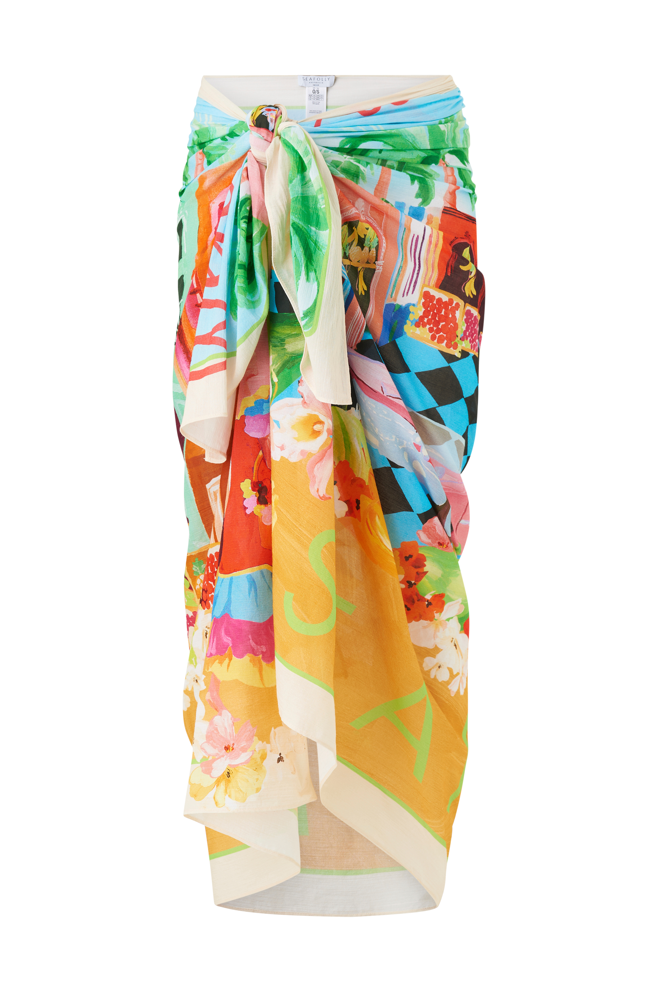 • Sarong ohuesta, ilmavasta puuvillasta painetulla kuvioinnilla