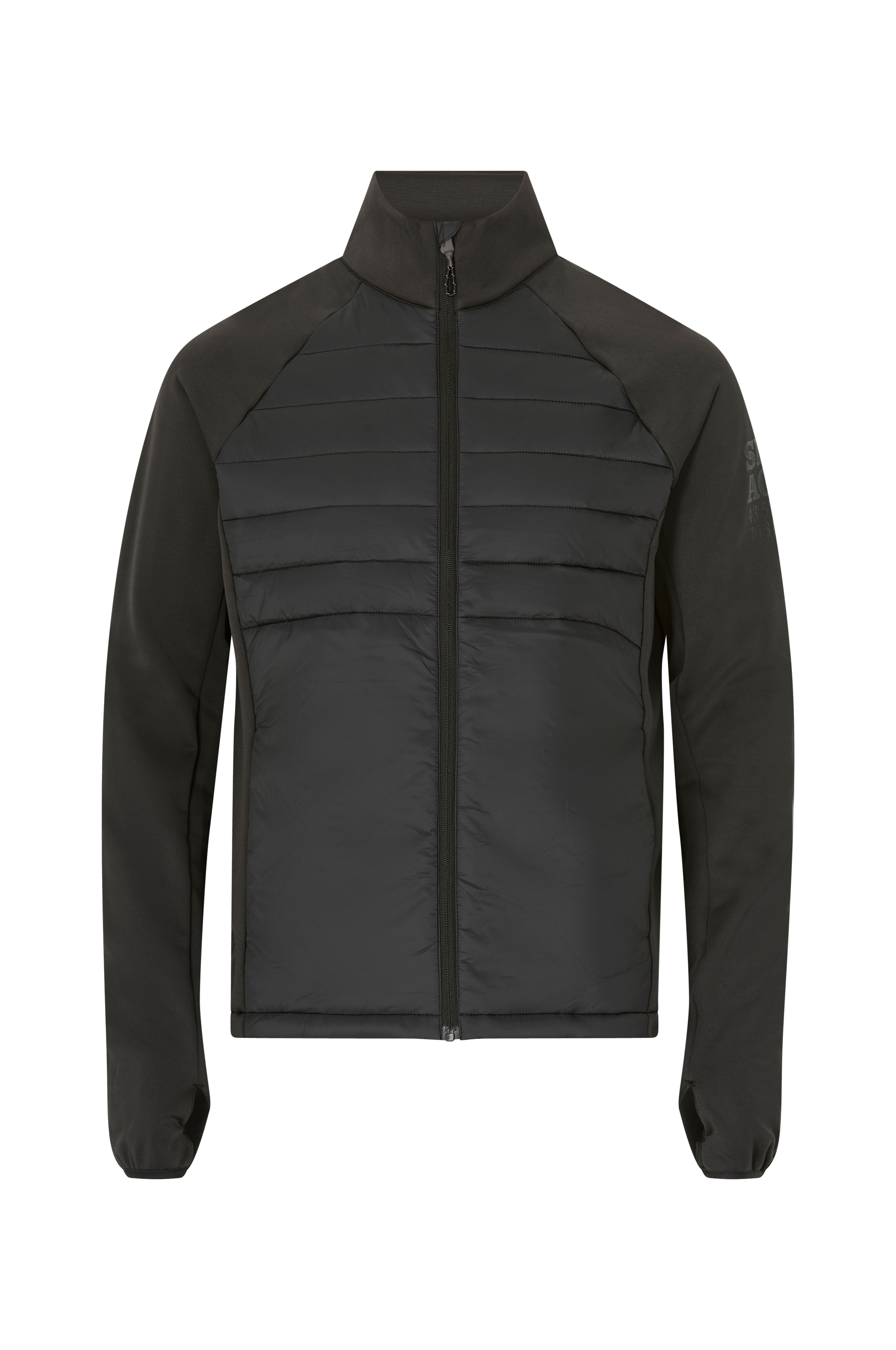 Monipuolinen ja toiminnallinen hybriditakki, jonka etu- ja takakappale kevyesti topattua kangasta. Sopii hyvin kevyeksi takiksi tai lämmittäväksi välikerroksen vaatteeksi. Kaulus, hihat ja sivut pehmeää ja joustavaa trikoota. Korkea kaulus, vetoketju ja kaksi vetoketjullista sivutaskua. Pituus n. 73 cm koossa M.