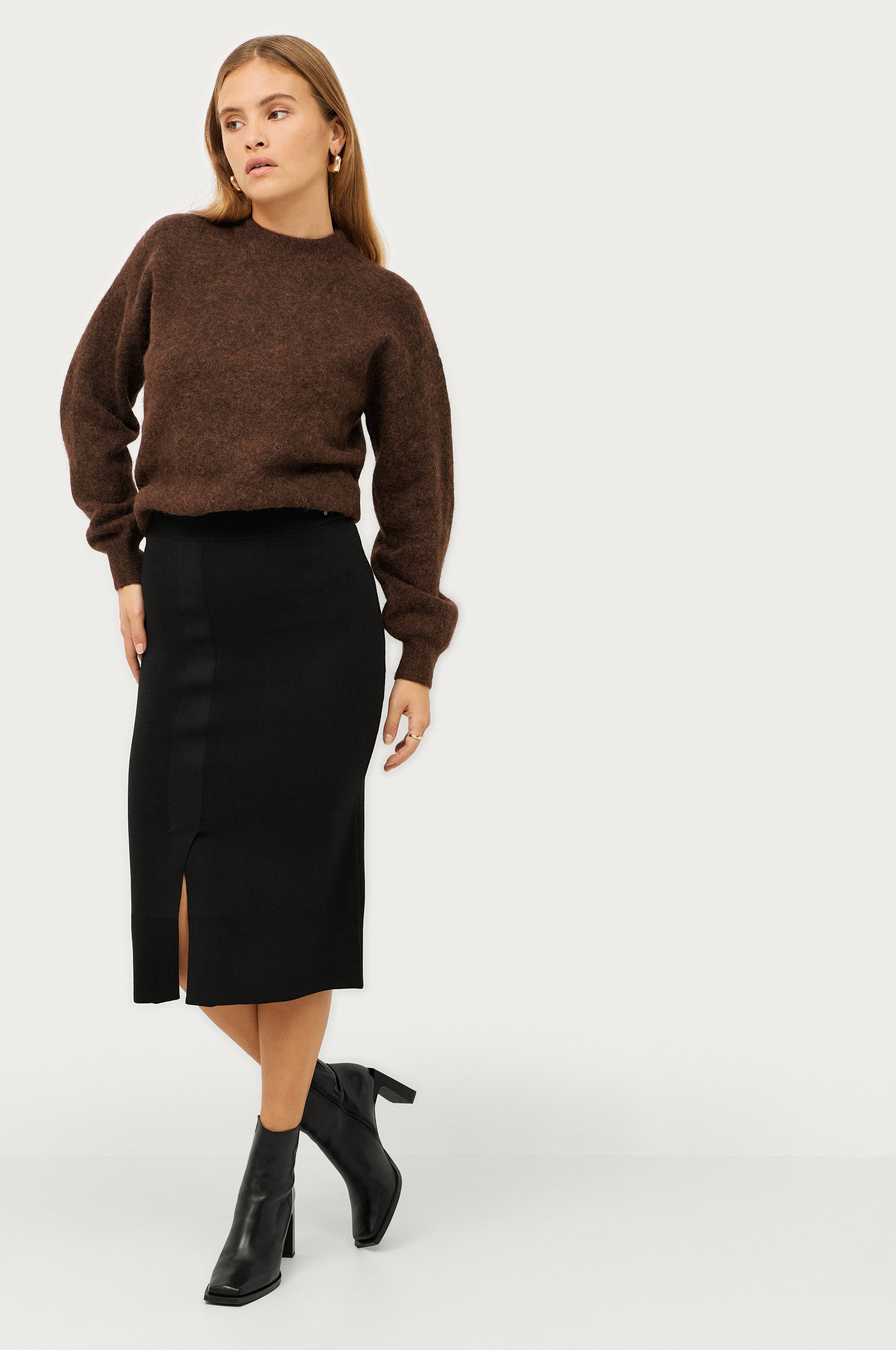 • Kapea, ihonmyötäinen hame viskoosisekoitteesta• Ribattu vyötärö• Halkio edessä• Pituus: 78 cm koossa S