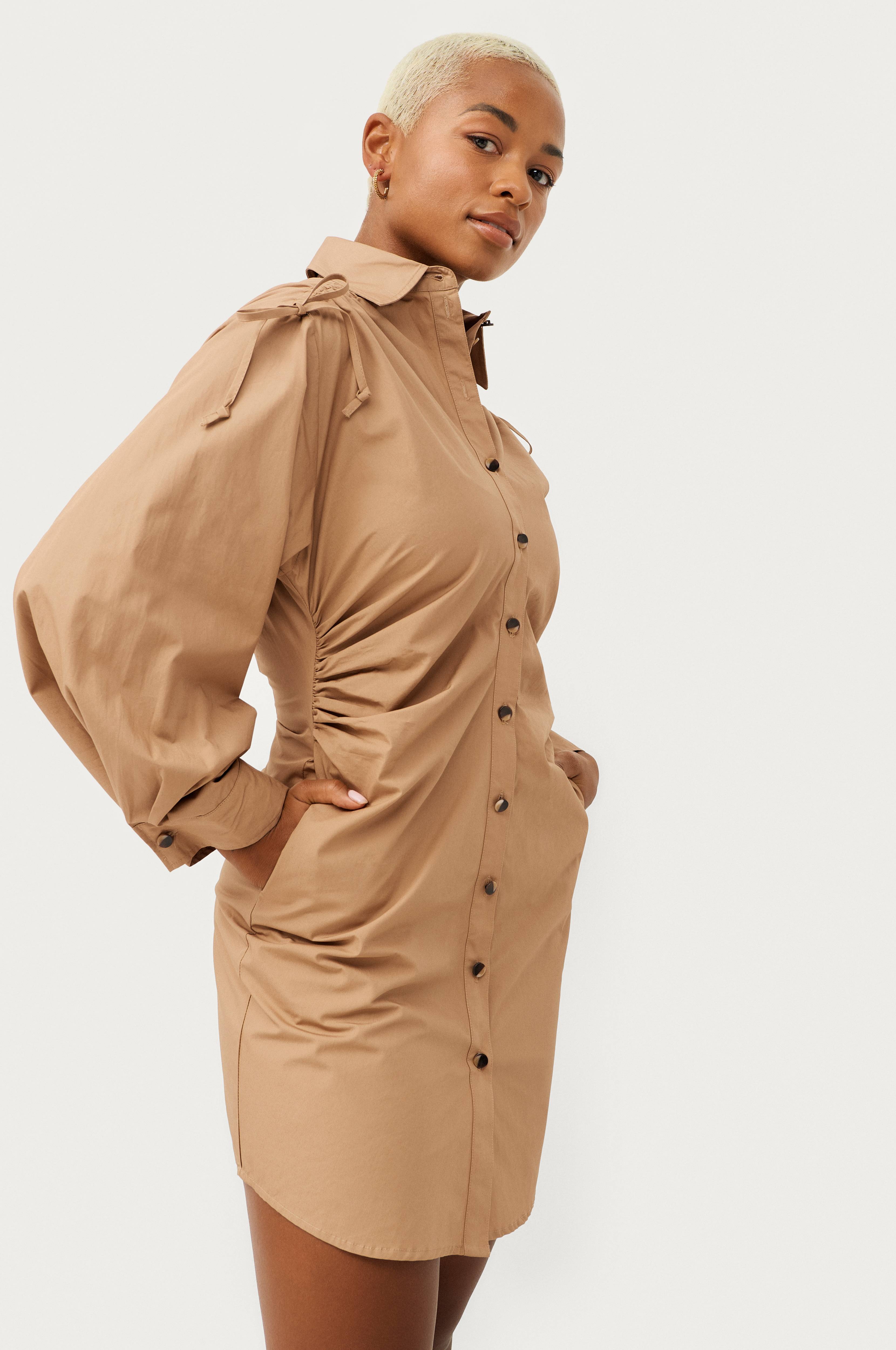 • Korostettu vyötärö poimutetulla drapeerauksella sivuilla