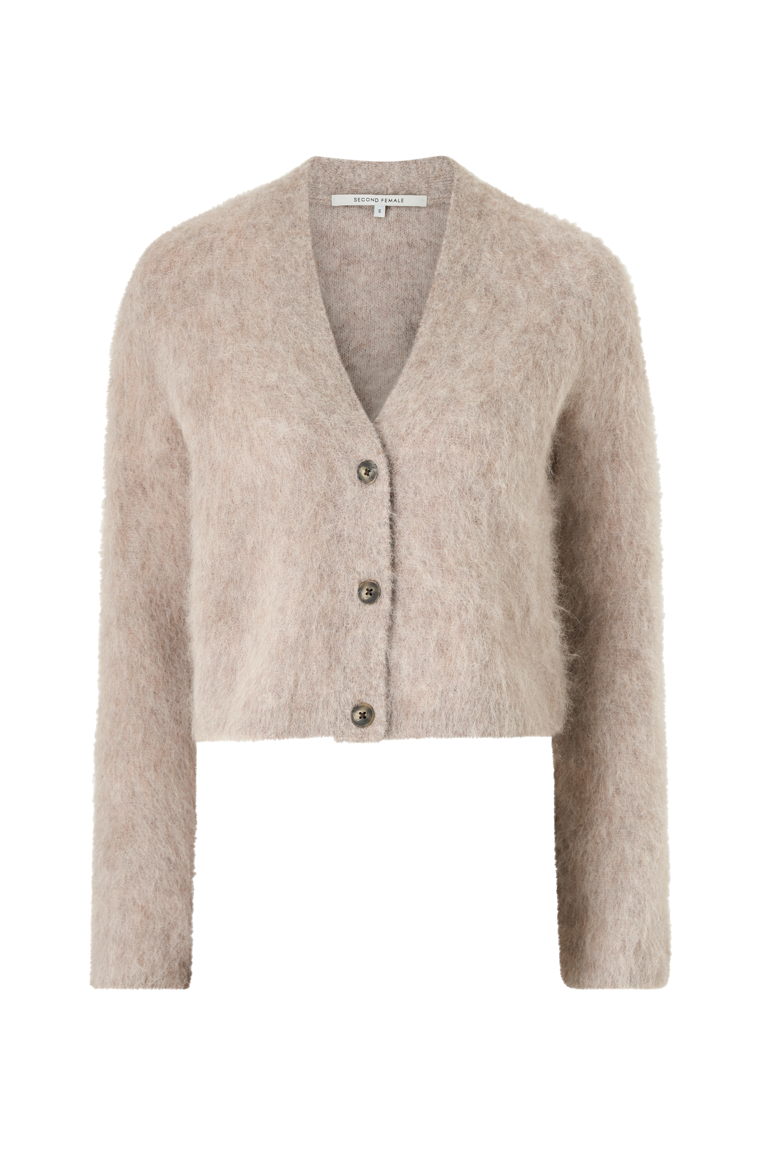 • Pehmeä, tiheäsilmukkainen neuletakki alpakka-sekoituksesta• V-muotoinen pääntie• Napituslista edessä