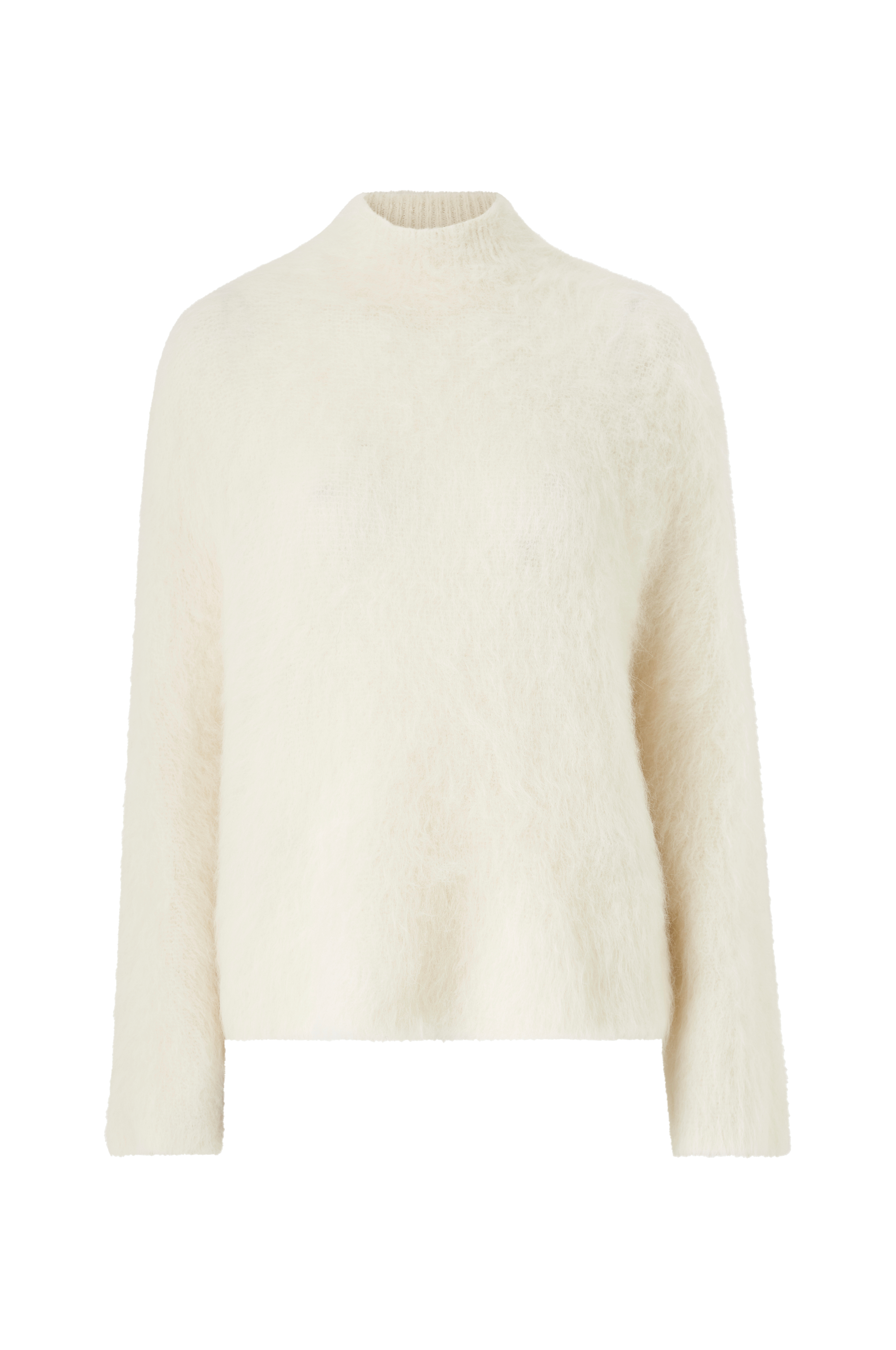 • Tiheäsilmukkainen, pitkähihainen paita elastisesta, paksusta, pehmeästä alpakka-sekoituksesta• Pudotettu, leveä käsivarsi• Pyöristetty, korkea, resorimainen pääntie• Löysä istuvuus• Pörröinen tekstuuri• Ribattu reuna manseteilla ja alhaalla
