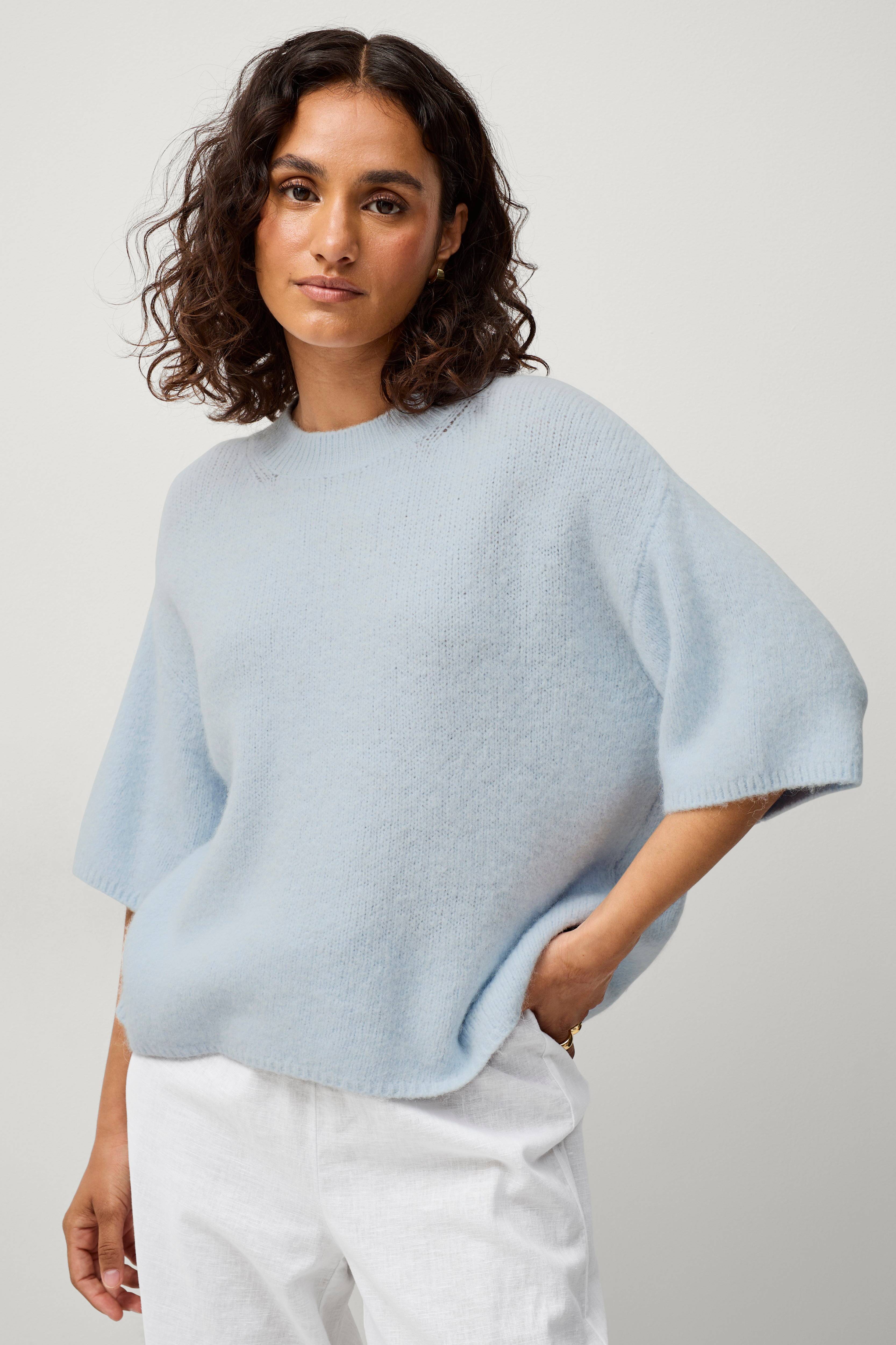 • Neulottu paita pehmeästä alpakka-sekoituksesta• Veneen muotoinen kaula-aukko• Pudotetut olkapäät• Lyhyet hihat