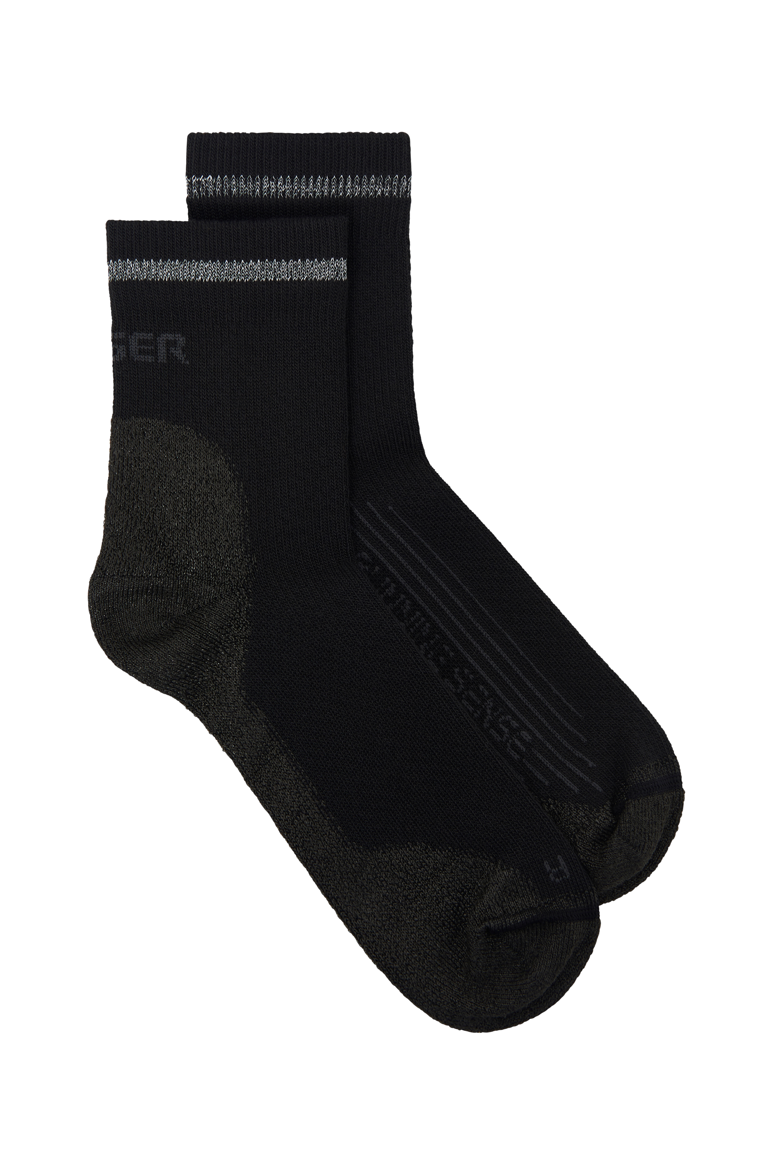Seger Running Mid Comfort -juoksusukat ovat korkealaatuiset sukat, jotka ovat erittäin pidetyt myös vaellus-/retkeilysukkina. Teknisen materiaalin ansiosta sukat sitovat erittäin vähän kosteutta ja kuivuvat nopeasti. Sukassa on froteepohja ja jalan alla vahvistettu Friction Relief, joka tekee melkein mahdottomaksi hiertymien tai rakkojen syntymisen. Kanavaneuloksessa päällyspuolella ja varressa on ilmakanavia, jotka takaavat maksimaalisen ilmanvaihdon ja istuvuuden. Saumattoman rakenteen ansiosta sukissa ei ole paksua kärkisaumaa. Y-kantapää istuu hyvin paikoillaan märkänäkin ja vähentää hankautumisriskiä. Heijastin varressa. Normaali varren korkeus, jossa on paikka myös kilpasirulle ilman että jalkaan tulee hiertymiä. Heijastin ylhäällä lisää näkyvyyttä pimeällä.