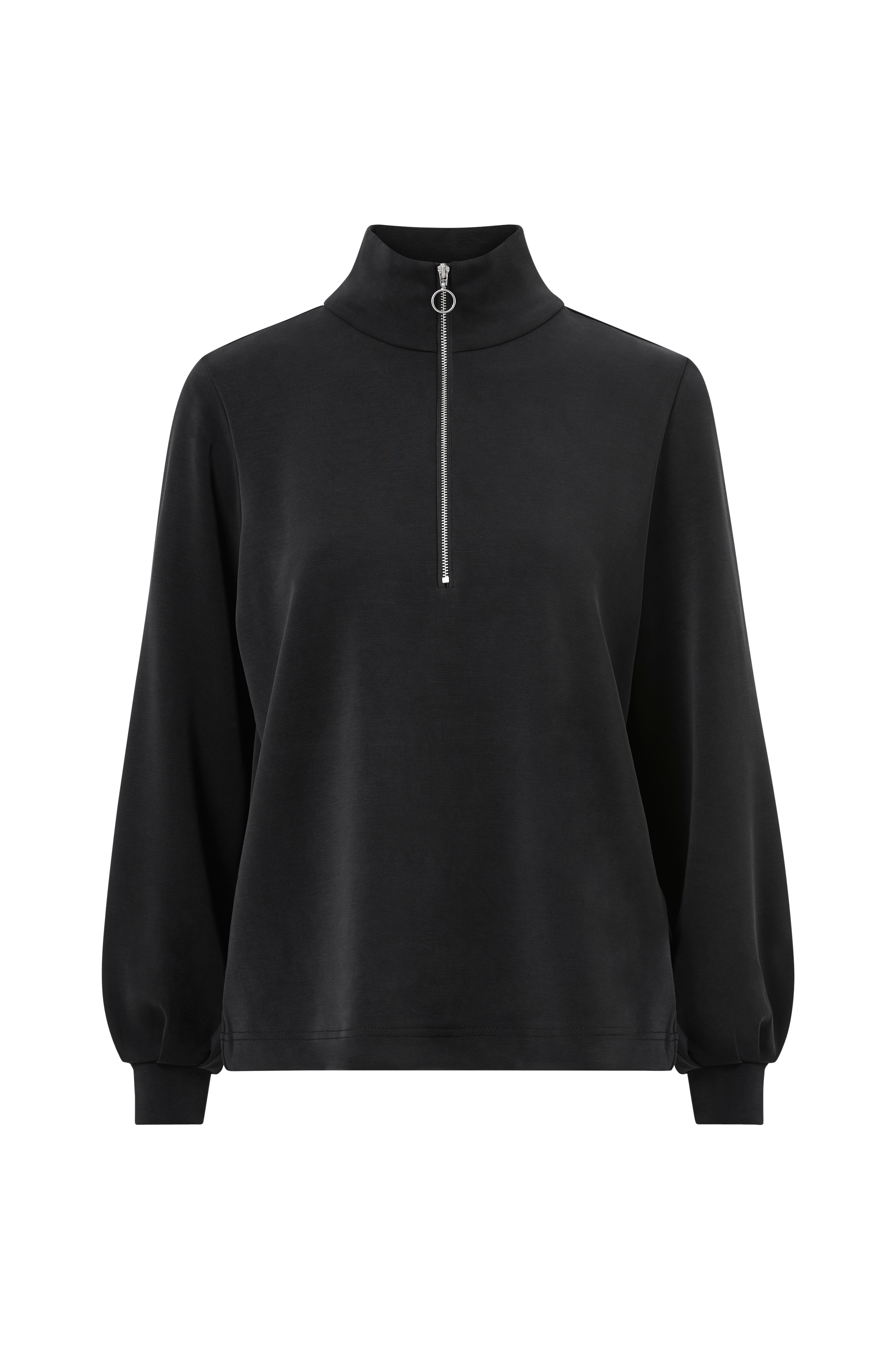 Pusero pehmeää, miellyttävää ja joustavaa modaalisekoitetta. Laatikkomainen malli ja pystykaulus, jossa vetoketju edessä. Leveät hihat, hihansuissa resori.